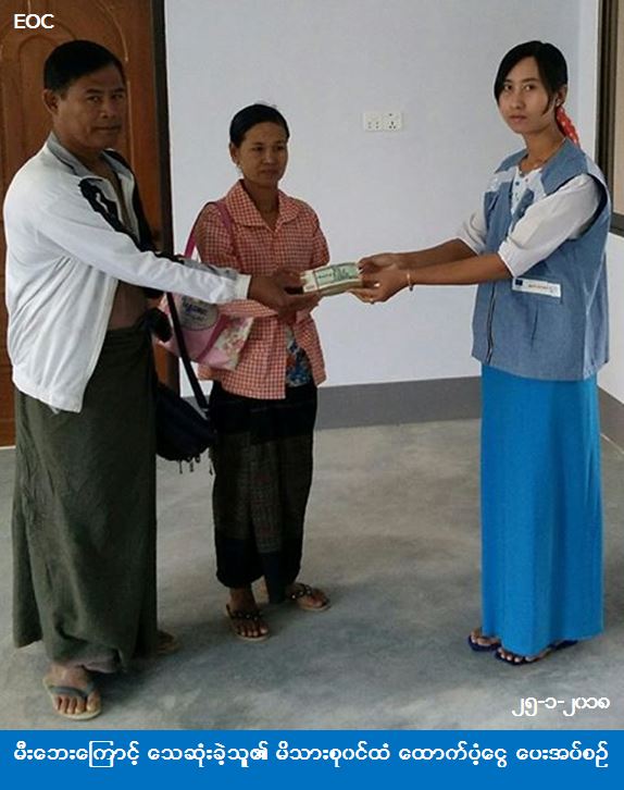 ကယ်ဆယ်ရေးနှင့် ပြန်လည်နေရာချထားရေးဦးစီးဌာန၊ မအူပင်ခရိုင်ဦးစီးမှူးရုံးမှ တာဝန်ရှိသူများသည် မအူပင်မြို့နယ်၊ ကဝက္ကင်းကျေးရွာအုပ်စု၊ တာတပေါကျေးရွာ၌ မီးဘေးကြောင့် သေဆုံးခဲ့သူ (၁) ဦးအတွက် ကယ်ဆယ်ရေးရန်ပုံငွေ (၃) သိန်းအား (၂၅-၁-၂၀၁၈) ရက်နေ့တွင် ကျေးရွာအုပ်စုအုပ်ချုပ်ရေးမှူးနှင့်အတူ ဘေးသင့်ပြည်သူ၏ မိသားစုဝင်ထံ ထောက်ပံ့ပေးအပ်ခဲ့ကြောင်း သိရှိရပါသည်။