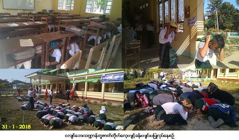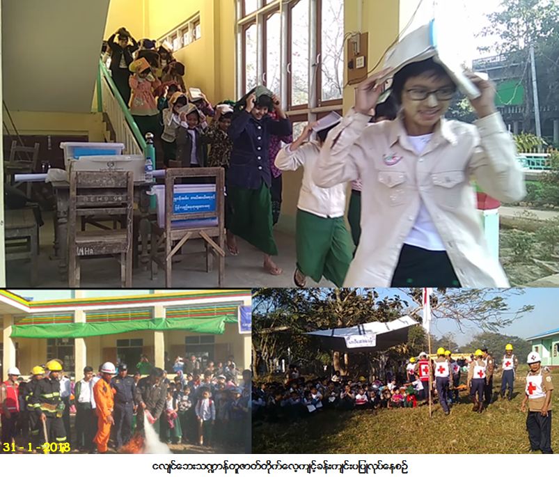 ကယ်ဆယ်ရေးနှင့် ပြန်လည်နေရာချထားရေးဦးစီးဌာန၊ ပြည်ခရိုင်ဦးစီးမှူးရုံးမှ တာဝန်ရှိသူများသည် မြို့နယ် အထွေထွေအုပ်ချုပ်ရေးဦးစီးဌာန၊ မီးသတ်ဦးစီးဌာန၊ ကြက်ခြေနီတပ်ဖွဲ့များနှင့် ပူးပေါင်း၍ (၃၁-၁-၂၀၁၈) ရက်နေ့၊ (၀၈း၂၃) နာရီအချိန်တွင် ပဲခူးတိုင်းဒေသကြီး၊ သာယာဝတီခရိုင်၊ မိုးညိုမြို့နယ်၊ အခြေခံပညာ အထက်တန်းကျောင်းတွင် ကျောင်းသား/ကျောင်းသူ (၂၀၀) ဦးခန့်ဖြင့် ငလျင်ဘေးဇာတ်တိုက်လေ့ကျင့်ခန်း အား ကျင်းပပြုလုပ်ခဲ့ပါသည်။ ထို့နောက် မိုးညိုမြို့နယ် ပညာရေးမှူးနှင့် ကျောင်းအုပ်ဆရာမကြီးတို့အား ဂုဏ်ပြုမှတ်တမ်းလွှာများပေးအပ်ခဲ့ကြောင်း သတင်းရရှိပါသည်။