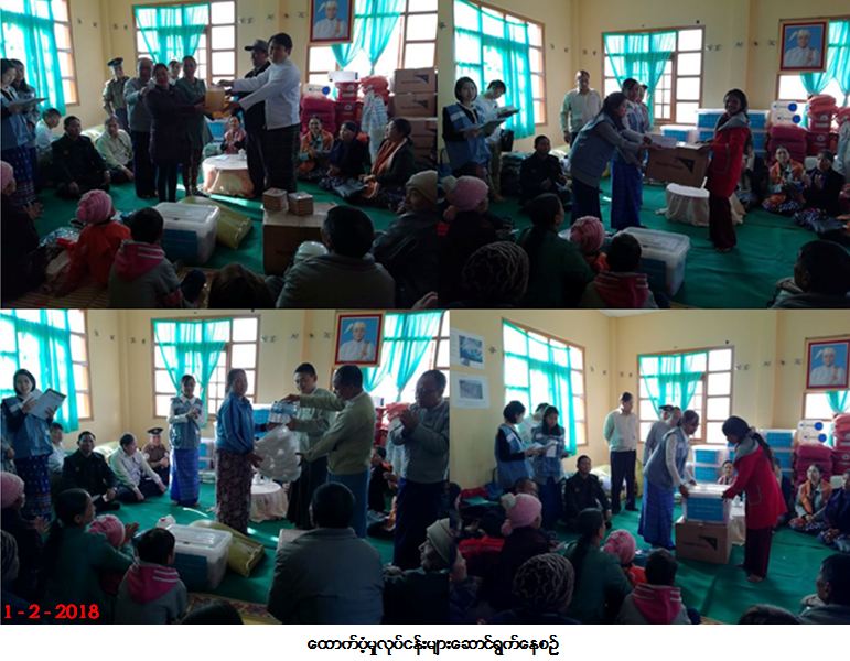 ကချင်ပြည်နယ်အစိုးရအဖွဲ့နှင့် ကယ်ဆယ်ရေးနှင့်ပြန်လည်နေရာချထားရေးဦးစီးဌာနတို့ပူးပေါင်း၍ IDPs မိသားစု (၁၄) စုအား ပလန.ငွေပျော်စံပြကျေးရွာသို့ (၁-၂-၂၀၁၈) ရက်နေ့တွင် ပြောင်းရွှေ့နေရာချထားပေးခဲ့ပါသည်။ အဆိုပါ ပြောင်းရွှေ့နေရာချထားပေးရာတွင် ကချင်ပြည်နယ်ဝန်ကြီးချုပ်၏ဇနီး ဒေါက်တာ ဒေါ်ဂျေကော့ဘူမှ အိမ်ထောင်စု (၁၂) စုအတွက် စောင် (၁၂) ထည်၊ ကချင်ပြည်နယ်အစိုးရအဖွဲ့၊ လူမှုရေး ဝန်ကြီး ဒေါက်တာသင်းလွင်မှ ဆန် (၁၄)အိတ် ၊ အနွေးထည် (၃၄) ထည် ၊ ကယ်ဆယ်ရေးနှင့်ပြန်လည်နေရာချထားရေးဦးစီးဌာန ၊ ကချင်ပြည်နယ်ဦးစီးမှူးရုံးမှ ကယ်ဆယ်ရေးပစ္စည်း (၁၇) မျိုး အိမ်ထောင်စု (၁၂) စုစာ တန်ဖိုး (၄၈၄,၂၃၆) နှင့် family kit (world vision) (၃၂) မျိုးပါ တန်ဖိုး (၈၇၈,၄၀၀) စုစုပေါင်း (၁,၃၆၂,၆၃၆) ကျပ် ၊ ပြည်နယ်ကျန်းမာရေးဦးစီးဌာန၊ ဒေါက်တာဝင်းလွင်၊ ဒုတိယညွှန်ကြားရေးမှူးချုပ်မှ ဆေးစိမ်ခြင်ထောင်(၁၄)ထည် ၊ ပြည်နယ်ပညာရးမှူး ဦးစီးဌာန ညွှန်ကြားရေးမှူး၊ ဦးအောင်သန်းမြင့်မှ ကျောပိုးအိတ်၊ ဗလာစာအုပ်၊ ဘောပင်၊ ပေတံ တန်ဖိုး (၆၀၀၀၀)ကျပ် ၊ မြန်မာနိုင်ငံ ကြက်ခြေနီတပ်ဖွဲ့မှ Kitchen set ၊ Shelter too kit ၊ Hygiene kit ၊ Dignity Kit၊ စောင်၊ ခြင်ဆေးခွေ၊ တာပေါ်လင် ၊ ရေပုံး