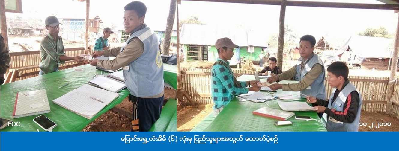 ဘေးအန္တရာယ်ဆိုင်ရာ စီမံခန့်ခွဲမှုဦးစီးဌာန၊ ခန္တီးခရိုင်ဦးစီးမှူးရုံးမှ တာဝန်ရှိသူများသည် နန်စီပွန်ရတနာနယ်မြေရှိ ရေမဆေးကျောက်ရှာဖွေသူများအား ပြန်လည်နေရာချထားပေးရေးလုပ်ငန်းများ ဆောင်ရွက်လျက်ရှိရာ (၁၀-၂-၂၀၁၈) ရက်နေ့တွင် ပြောင်းရွှေ့တဲအိမ် (၆) လုံးအတွက် တစ်အိမ်လျှင် (၃၀၀၀၀) ကျပ်နှုန်းဖြင့် စုစုပေါင်း (၁၈၀၀၀၀) ကျပ် ထောက်ပံ့ပေးခဲ့ကြောင်း သိရှိရပါသည်။