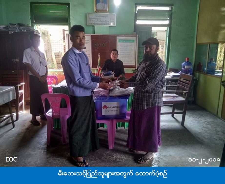 ပြည်ခရိုင်၊ ပြည်မြို့နယ်၊ ရွာဘဲရပ်ကွက်၊ မင်းကန်ပိုင်ရပ်ကွက်၌ (၁၀-၂-၂၀၁၈) ရက်နေ့တွင် ဖြစ်ပွားခဲ့သော မီးဘေးကြောင့် ဘေးသင့်ခဲ့သည့် နေအိမ် (၁) လုံးအတွက် အိမ်ဆောက်ပစ္စည်းဖိုး ထောက်ပံံ့ငွေ (၁၀၀၀၀၀) ကျပ်၊ မီးဘေးသင့်လူဦးရေ (၂) ဦးအတွက် ဆန်ရိက္ခာဖိုးထောက်ပံ့ငွေ (၄၂၀၀) ကျပ်၊ စုစုပေါင်းထောက်ပံံ့ငွေ (၁၀၄၂၀၀) ကျပ်နှင့် ကယ်ဆယ်ရေးပစ္စည်း ၉ မျိုး ကတ္တူပုံးအပါ ၁ပုံး ၊ Family Kits ၁ ပုံးတို့အား ဘေးအန္တရာယ်ဆိုင်ရာ စီမံခန့်ခွဲမှုဦးစီးဌာန၊ ပြည်ခရိုင်ဦးစီးမှူးရုံးမှ တာဝန်ရှိသူများက (၁၁-၂-၂၀၁၈) ရက်နေ့တွင် သွားရောက်ထောက်ပ့ံပေးအပ်ခဲ့ကြောင်း သိရှိရပါသည်။