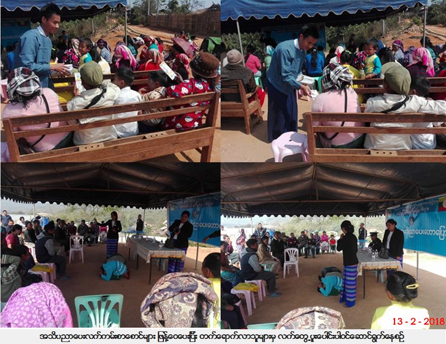 ဘေးအန္တရာယ်ဆိုင်ရာစီမံခန့်ခွဲမှုဦးစီးဌာန၊ကျိုင်းတုံခရိုင်ဦးစီးမှူးရုံးမှတာဝန်ရှိသူများသည် (၁၃-၂-၂၀၁၈) နေ့၊ (၁၀း၀၀) အချိန်မှ (၁၁း၃၀) နာရီအချိန်အထိ ရှမ်းပြည်နယ် အရှေ့ပိုင်း၊ကျိုင်းတုံခရိုင်၊ မိုင်းခတ်မြို့နယ်၊ အမှတ် (၁) ရပ်ကွက်တွင် ပြည်သူလူထု (၈၀) ဦးအား ငလျင်ဘေးအန္တရာယ်ဆိုင်ရာ အသိပညာပေးဟောပြောပွဲ ကျင်းပပြုလုပ်ခြင်း၊ အသိပညာပေးလက်ကမ်းစာစောင်များဖြန့်ဝေပေးခြင်းများကို ဆောင်ရွက်ခဲ့ပြီး တက်ရောက် လာသူများအား လက်တွေ့ပူးပေါင်းပါဝင်ဆောင်ရွက်စေခဲ့ကြောင်း သတင်းရရှိပါသည်။