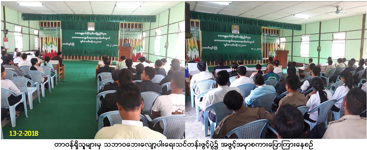 ဘေးအန္တရာယ်ဆိုင်ရာစီမံခန့်ခွဲမှုဦးစီးဌာန၊ မကွေးတိုင်းဒေသကြီးဦးစီးမှူးရုံးမှ တာဝန်ရှိသူများသည် မကွေးတိုင်းဒေသကြီး၊ တောင်တွင်းကြီးမြို့နယ်ထွေ/အုပ်ရုံးခန်းမတွင် (၁၃-၂-၂၀၁၈)ရက်နေ့၌ သဘာဝဘေးလျော့ပါးရေး စေတနာ့ဝန်ထမ်းလူငယ်မွမ်းမံ သင်တန်းကိုဖွင့်လှစ်ပေးခဲ့ရာသင်တန်းဖွင့်ပွဲသို့ မြို့နယ်အတွင်းမှသင်တန်းသား(၄၀)ဦးတက်ရောက်ကြပြီး သင်တန်းကာလမှာ (၁၃-၂-၂၀၁၈)ရက်နေ့မှ (၁၆-၂-၂၀၁၈)ရက်နေ့ထိ (၄)ရက်တာကြာမြင့်မည်ဖြစ်ကြောင်း သတင်းရရှိရပါသည်။
