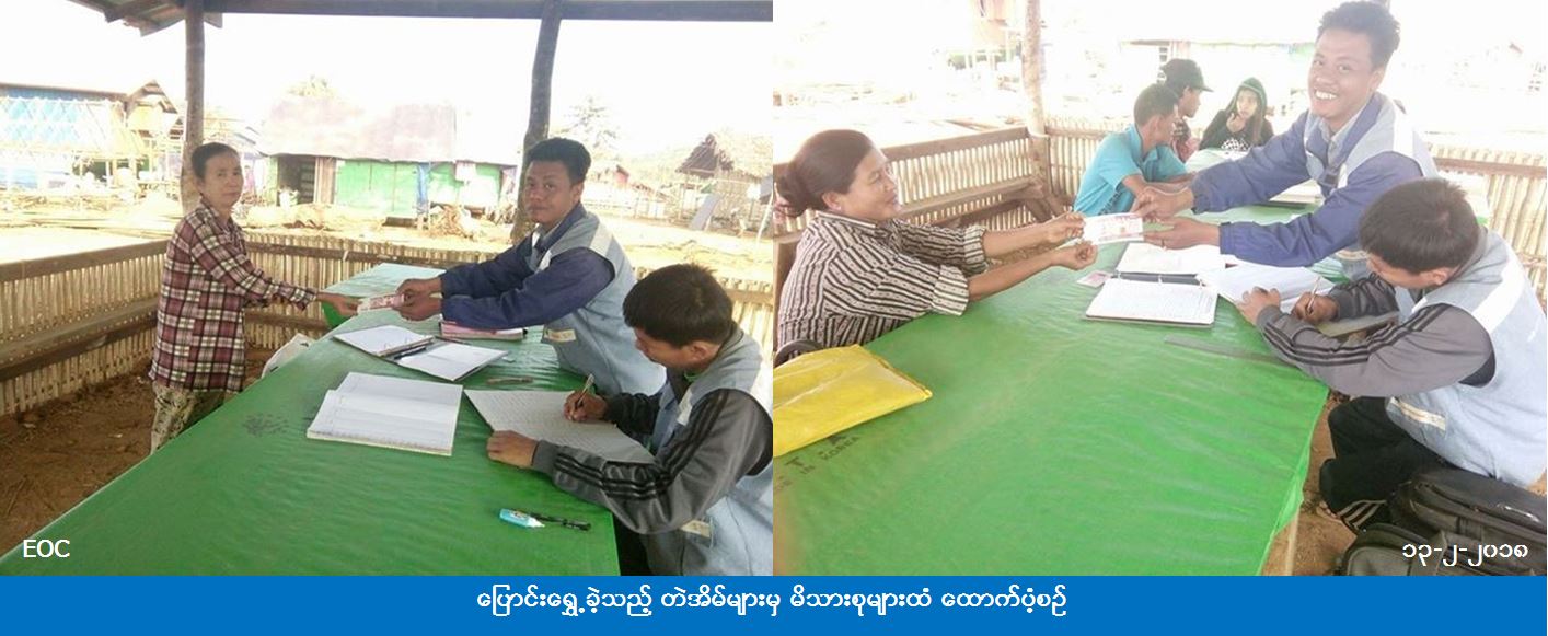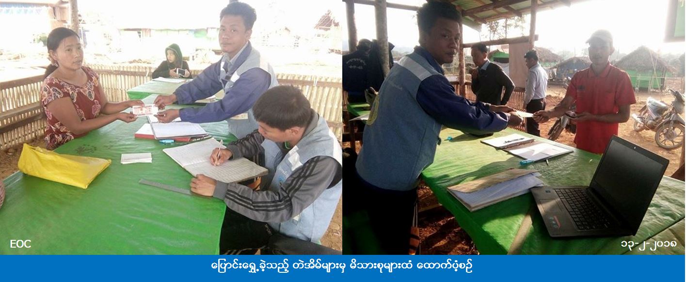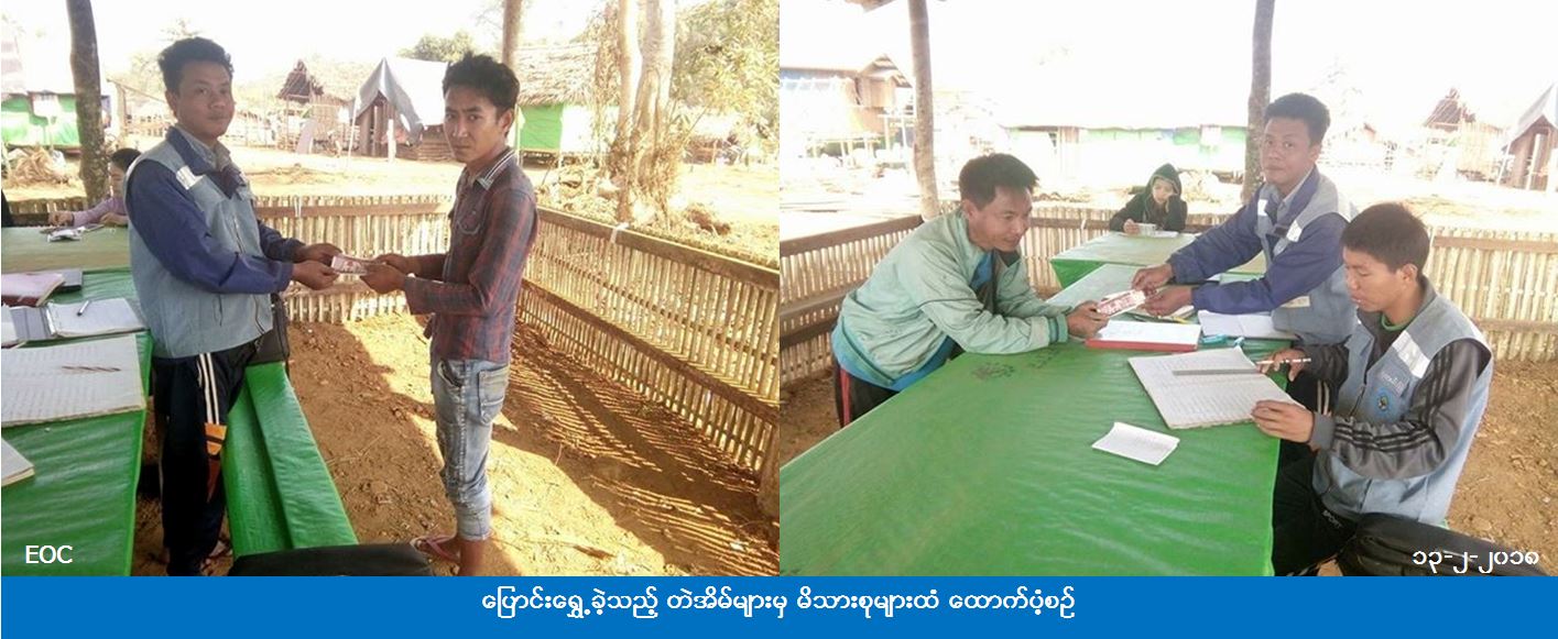 ဘေးအန္တရာယ်ဆိုင်ရာ စီမံခန့်ခွဲမှုဦးစီးဌာန၊ ခန္တီးခရိုင်ဦးစီးမှူးရုံးမှ တာဝန်ရှိသူများသည် နန်စီပွန်ရတနာနယ်မြေရှိ ရေမဆေးကျောက်ရှာဖွေသူများအား ပြန်လည်နေရာချထားပေးရေးလုပ်ငန်းများ ဆောင်ရွက်လျက်ရှိရာ (၁၃-၂-၂၀၁၈) ရက်နေ့တွင် ပြောင်းရွှေ့ခဲ့သည့် တဲအိမ် (၃၄) လုံးအတွက် တစ်တဲလျှင် (၃၀၀၀၀) ကျပ်နှုန်းဖြင့် စုစုပေါင်း (၁၀၂၀၀၀၀) ကျပ်အား ထောက်ပံ့ပေးခဲ့ကြောင်း သိရှိရပါသည်။