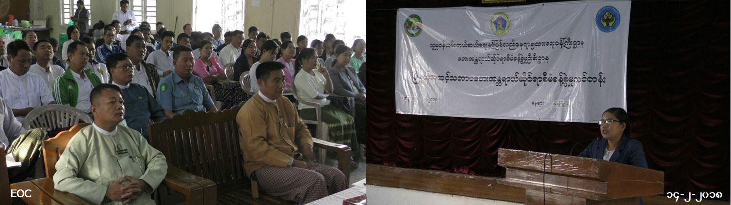 ဘေးအန္တရာယ်ဆိုင်ရာ စီမံခန့်ခွဲမှုဦးစီးဌာန၊ ဧရာဝတီတိုင်းဒေသကြီးဦးစီးမှူးရုံးမှ ကြီးမှူး၍ မြို့နယ်အဆင့်သဘာဝဘေးအန္တရာယ်ဆိုင်ရာစီမံခန့်ခွဲမှုသင်တန်းအား (၁၄-၂-၂၀၁၈) ရက်နေ့၊ (၀၈း၃၀) နာရီအချိန်တွင် ရေကြည်မြို့နယ်အထွေထွေအုပ်ချုပ်ရေးဦးစီးဌာန၊ ရေကြည်ခန်းမ၌ ဖွင့်ပွဲအခမ်းအနား ကျင်းပပြုလုပ်ခဲ့ရာ တိုင်းဒေသကြီးလွှတ်တော်ကိုယ်စားလှယ် ဦးမျိုးညွှန့်မှ အဖွင့်အမှာစကားပြောကြားခဲ့ပြီး မြို့နယ်အုပ်ချုပ်ရေးမှူး ဦးမိုးဦး၊ မြို့နယ်အဆင့်ဌာနဆိုင်ရာများ၊ လူမှုရေးအဖွဲ့အစည်းများ စုစုပေါင်း ရ၀ ဦးခန့်တက်ရောက်ခဲ့ပါသည်။ အဆိုပါသင်တန်းအား (၁၄-၂-၂၀၁၈) ရက်နေ့မှ (၁၆-၂-၂၀၁၈) ရက်နေ့အထိ သင်တန်းသား/သူ ၃၃ ဦးဖြင့် သင်တန်းကာလ ၃ ရက်ကြာ ဖွင့်လှစ်သွားမည်ဖြစ်ပါကြောင်း သိရှိရပါသည်။