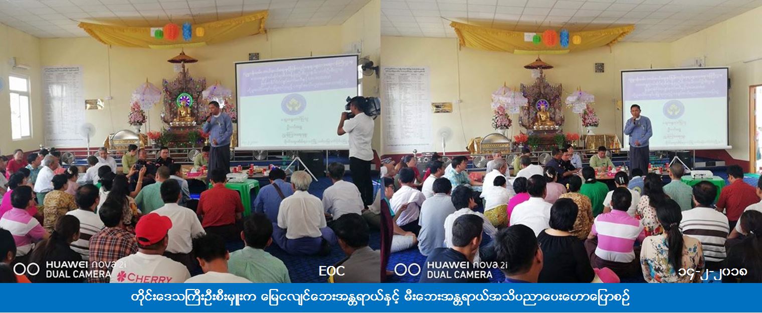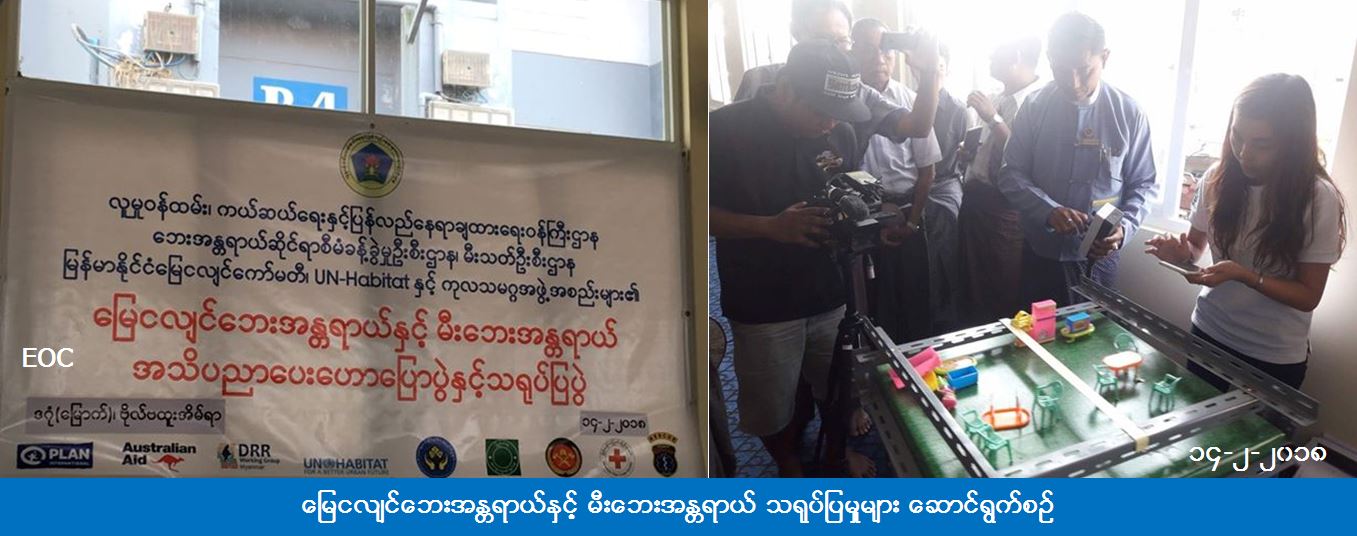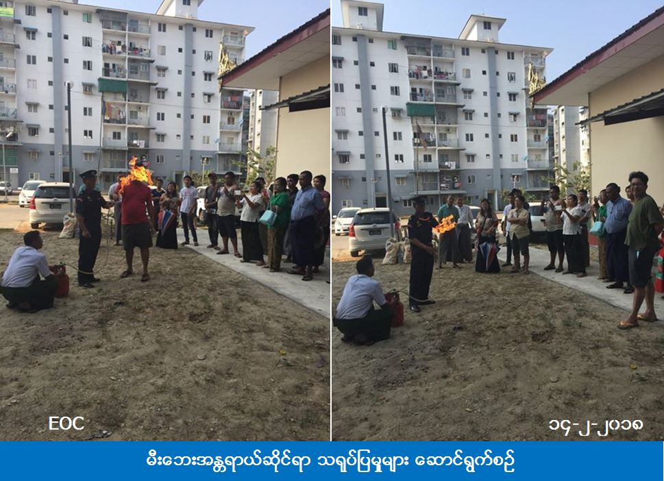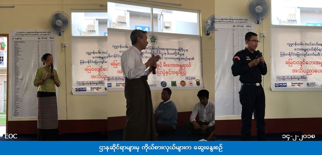 (၁၄-၂-၂၀၁၈) ရက်နေ့ ၊ နေ့လည်ပိုင်းတွင် ဒဂုံမြို့သစ်မြောက်ပိုင်း၊ ဗိုလ်ဗထူးအိမ်ရာ၌ မြေငလျင်ဘေးအန္တရာယ်နှင့် မီးဘေးအန္တရာယ်အသိပညာပေးဟောပြောပွဲနှင့် သရုပ်ပြပွဲအား ဘေးအန္တရာယ်ဆိုင်ရာစီမံခန့်ခွဲမှုဦးစီးဌာန ၊ ရန်ကုန်တိုင်းဒေသကြီးဦးစီးမှူးရုံးမှ ဦးစီး၍ မြန်မာနိုင်ငံမြေငလျင်ကော်မတီ ၊ မီးသတ်ဦးစီးဌာန ၊ UN-Habitat တို့နှင့်ပူးပေါင်းဆောင်ရွက်ခဲ့ပြီး ပြည်သူလူထုအင်အား (၁၀၀) ခန့်အား ဟောပြော သရုပ်ပြမှု ပြုလုပ်ခဲ့ကြောင်း သိရှိရပါသည်။