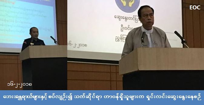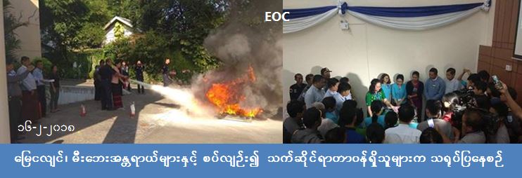 (၁၆-၂-၂၀၁၈) ရက်နေ့၊ နေ့လည်ပိုင်းတွင် ဘေးအန္တရာယ်ဆိုင်ရာစီမံခန့်ခွဲမှုဦးစီးဌာန၊ ရန်ကုန်တိုင်းဒေသကြီး ဦးစီးမှူးရုံးမှ ဦးစီးပြီး မီးသတ်ဦးစီးဌာန၊မြန်မာနိုင်ငံမြေငလျင်ကော်မတီနှင့် UN-Habitat တို့ပူးပေါင်းပြီး မြန်မာနိုင်ငံကုန်သည် များ နှင် စက်မှုလက်မှုလုပ်ငန်းရှင်များအသင်းချုပ်၊ UMFCCI ရုံး၊ မင်းရဲကျော်စွာလမ်း ၊ လမ်းမတော်မြို့နယ်တွင် ကုမ္ပဏီများ၊ ဟိုတယ်နှင့် ကိုယ်ပိုင်ဆေးရုံများမှ ဝန်ထမ်း (၁၅၀)ဦးခန့်အား မြေငလျင်၊ မီးဘေးအန္တရာယ် ဟောပြောပွဲနှင့် သရုပ်ပြပွဲအား ပြုလုပ်ပေးခဲ့ပါကြောင်း သိရှိရပါသည်။