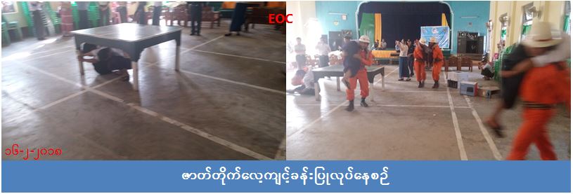 ဘေးအန္တရာယ်ဆိုင်ရာစီမံခန့်ခွဲမှုဦးစီးဌာန၊ မြောင်းမြခရိုင်ဦးစီးမှူးရုံးမှ တာဝန်ရှိသူများ သည် (၁၆-၂-၂၀၁၈) ရက်နေ့တွင် မြောင်းမြမြို့ စိုက်ပျိုးရေးသိပ္ပံကျောင်း ၌ ဌာနဆိုင်ရာများ၊ သင်တန်းသူ သင်တန်းသားများ ၊ စုစုပေါင်း လူဦးရေ (၄၅၀) ဦး တို့ဖြင့် သဘာဝဘေးလျော့ပါး အသိပညာပေး ဟောပြောပွဲနှင့် ငလျင်ဘေးသဏ္ဌန်တူ ဇာတ်တိုက်လေ့ကျင့်ခန်းပြုလုပ်ခဲ့ကြောင်း သိရှိရပါသည်။