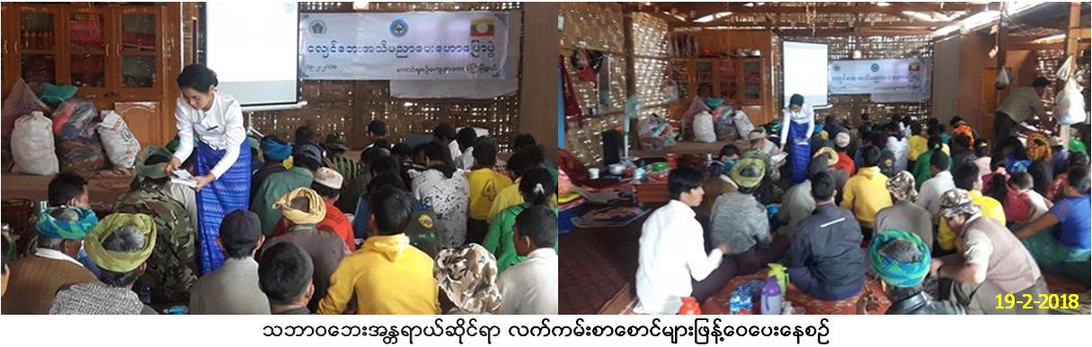ဘေးအန္တရာယ်ဆိုင်ရာစီမံခန့်ခွဲမှုဦးစီးဌာန၊ ရှမ်းပြည်နယ်ဦးစီးမှူးရုံးမှ တာဝန်ရှိသူများသည် (၁၉-၂-၂၀၁၈)ရက်နေ့ နံနက်ပိုင်းတွင် တောင်ကြီးမြို့နယ်၊ လုံးကေကျေးရွာ၌ ကျေးရွာသူ၊ ကျေးရွာသား(၁၂၀)ဦးရေခန့့်အားလည်းကောင်း၊ ညနေပိုင်းတွင် တောင်ကြီးမြို့နယ်၊ ကောင်းမှုစဉ်ကျေးရွာ၌ ကျေးရွာသူ၊ ကျေးရွာသား (၁၃၀) ခန့်အားလည်းကောင်း ငလျင်ဘေးအပါအဝင် သဘာဝဘေးအန္တရာယ်များနှင့် စပ်လျဉ်းသည့်အကြောင်းအရာများရှင်းလင်းဆွေးနွေးခြင်း၊ ပညာပေးဗွီဒီယိုပြသခြင်း၊ လက်ကမ်းစာစောင်များဖြန့်ဝေပေးခြင်းများ ဆောင်ရွက်ခဲ့ကြောင်း သတင်းရရှိပါသည်။