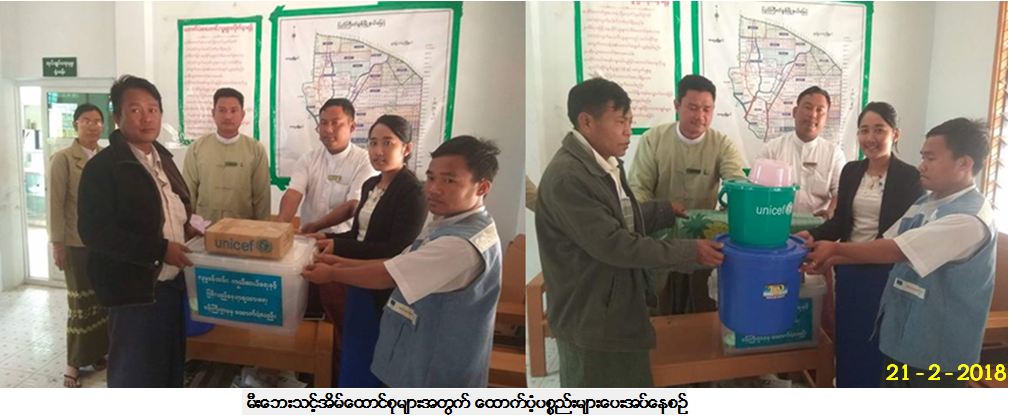 ဘေးအန္တရာယ်ဆိုင်ရာစီမံခန့်ခွဲမှုဦးစီးဌာန၊ မန္တလေးတိုင်းဒေသကြီးဦးစီးမှူးရုံးမှ တာဝန်ရှိသူများသည် မန္တလေးတိုင်း ဒေသကြီး၊ ပြည်ကြီးတံခွန်မြို့နယ်၌ (၂၀-၂-၂၀၁၈) ရက်နေ့တွင် ဖြစ်ပွားခဲ့သောမီးဘေးကြောင့် ဘေးသင့်ခဲ့သော အိမ်ထောင်စု (၅) စုအတွက် ကယ်ဆယ်ရေးပစ္စည်း (၁၆) မျိုးပါ (၅) အိမ်ထောင်စာ၊ Hygiene Kit (၅) စုံ၊ အိမ်ဆောက် ပစ္စည်းဖိုးငွေ (၁,၀၀၀,၀၀၀) နှင့် လူဦးရေ (၂၉) ဦးအတွက် ဆန်ရိက္ခာဖိုးငွေ (၆၀,၉၀၀) ကျပ်တို့အား (၂၁-၂-၂၀၁၈) ရက်နေ့တွင် သွားရောက်ထောက်ပံ့ပေးအပ်ခဲ့ကြောင်း သတင်းရရှိပါသည်။