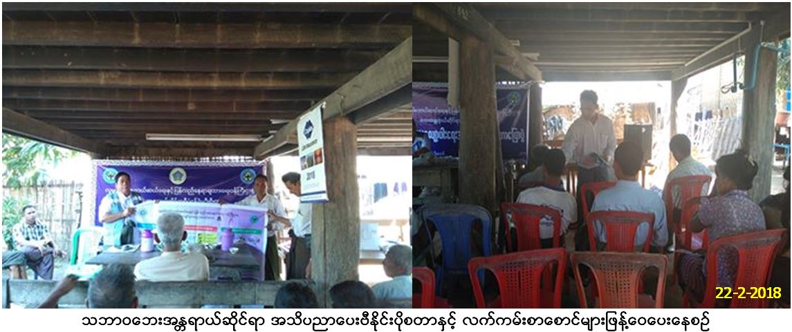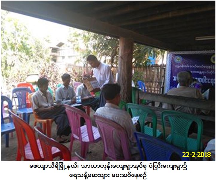 ဘေးအန္တရာယ်ဆိုင်ရာစီမံခန့်ခွဲမှုဦးစီးဌာန၊ ပြည်ထောင်စုနယ်မြေ နေပြည်တော်တိုင်းဦးစီးမှူးရုံးမှ တိုင်းဦးစီးမှူးနှင့်ဝန်ထမ်းများသည်(၂၂-၂-၂၀၁၈)ရက်နေ့တွင် ဇေယျာသီရိမြို့နယ်၊ သာယာကုန်းကျေးရွာအုပ်စု ဝဲကြီးကျေးရွာ၌ ကျေးရွာသူ/ကျေးရွာသား လူဦးရေ (၁၅၀)ဦးရေခန့်အား သဘာဝဘေးအသိပညာပေးဟောပြောခဲ့ပြီး တက်ရောက်လာသူများအား လက်ကမ်းစာစောင်များ၊ သဘာဝဘေးဗီနိုင်းပိုစတာများနှင့် ရေသန့်ဆေးများ ဖြန့်ဝေပေးခဲ့ကြောင်း သတင်းရရှိပါသည်။