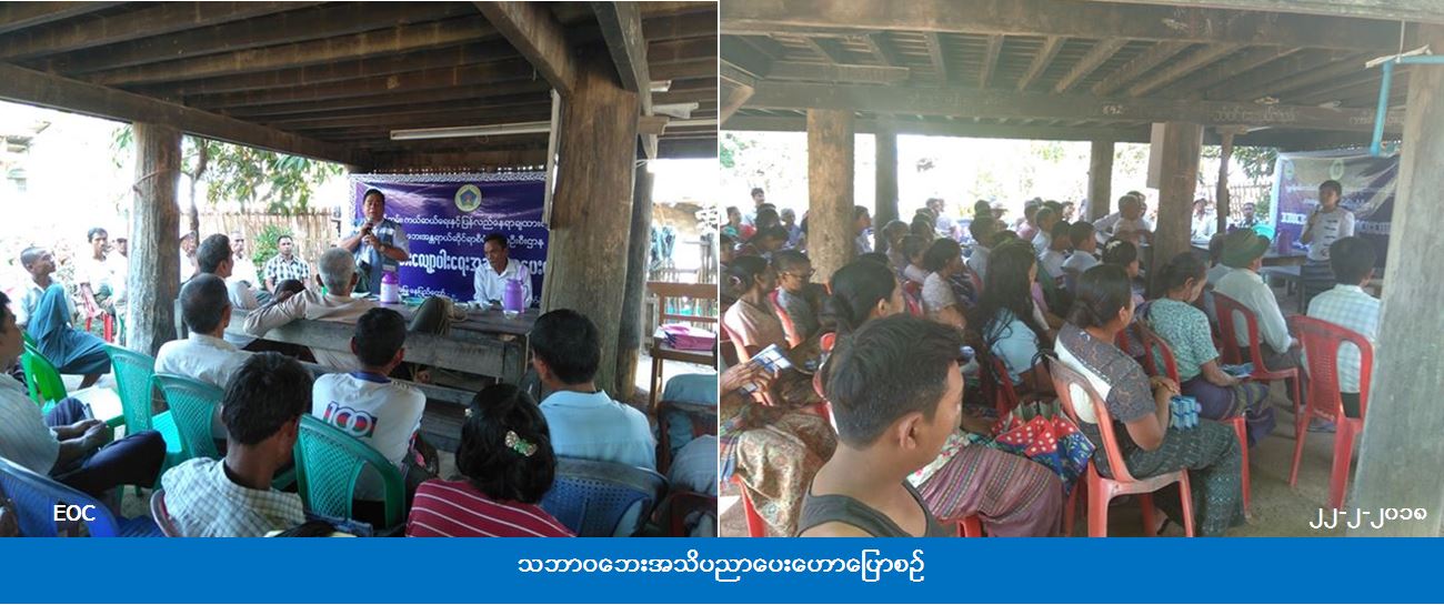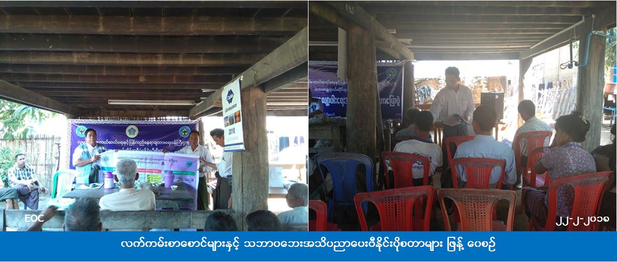 ဘေးအန္တရာယ်ဆိုင်ရာစီမံခန့်ခွဲမှုဦးစီးဌာန၊ ပြည်ထောင်စုနယ်မြေ နေပြည်တော်တိုင်းဦးစီးမှူးရုံးမှ တိုင်းဦးစီးမှူးနှင့်ဝန်ထမ်းများသည် (၂၂-၂-၂၀၁၈) ရက်နေ့၊ (၁၃း၃၀~၁၅း၀၀) နာရီအချိန်တွင် ဇေယျာသီရိမြို့နယ် သာယာကုန်းကျေးရွာအုပ်စု ဝဲကြီးကျေးရွာ၌ ကျေးရွာသူ/ကျေးရွာသား လူဦးရေ (၁၅၀) ဦးခန့်အား သဘာဝဘေးအသိပညာပေးဟောပြောခဲ့ပြီး တက်ရောက်လာသူများအား လက်ကမ်းစာစောင်များ၊ သဘာဝဘေးအသိပညာပေးဗီနိုင်းပိုစတာများနှင့် ရေသန့်ဆေးများ ဖြန့်ဝေခဲ့ကြောင်း သိရှိရပါသည်။