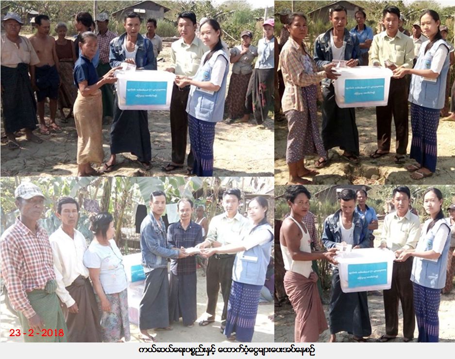 ဘေးအန္တရာယ်ဆိုင်ရာစီမံခန့်ခွဲမှုဗဟိုဌာန၊ ဟင်္သာတခရိုင်ဦးစီးမှူးရုံးမှ တာဝန်ရှိသူများသည် ဟင်္သာတမြို့နယ်၊ ခြင်ဘို့ ကျေးရွာအုပ်စု၊ ကျောက်ရဲကျေးရွာ၌ (၂၂-၂-၂၀၁၈) ရက်နေ့တွင် ကမ်းပြိုမှုကြောင့် ကြိုတင်ရွှေ့ပြောင်း အိမ်ခြေ (၁၆) လုံး အိမ်ထောင်စု (၁၆) စု၊ လူဦးရေ (၆၂) ဦးတို့အတွက် ကယ်ဆယ်ရေးပစ္စည်း (၁၀) မျိုး (၁၆)အိမ်ထောင်စာ၊ အိမ်ဆောက်ပစ္စည်းဖိုးငွေ (၁,၆၀၀,၀၀၀)နှင့် ဆန်ရိက္ခာဖိုးငွေ (၁၃၀,၂၀၀) ကျပ်တို့အား (၂၃-၂-၂၀၁၈) ရက်နေ့တွင် ဟင်္သာတမြို့နယ်၊ အထွေထွေအုပ်ချုပ်ရေးဦးစီးဌာနမှ တာဝန်ရှိသူများနှင့်အတူ ဘေးသင့်ပြည်သူများ၏ လက်ဝယ် အရောက် ထောက်ပံ့ပေးအပ်ခဲ့ကြောင်း သတင်းရရှိပါသည်။