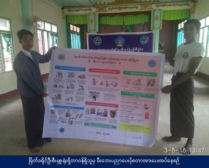ဘေးအန္တရာယ်ဆိုင်ရာစီမံခန့်ခွဲမှုဦးစီးဌာန၊ မြိတ်ခရိုင်ဦးစီးမှူးရုံးမှ တာဝန်ရှိသူများသည် (၈-၃-၂၀၁၈)ရက်နေ့တွင် တနင်္သာရီမြို့နယ်၊ ဘန်လောကျေးရွာအုပ်စု၊ ဘန်လောကျေးရွာ၌ သဘာဝဘေးအသိပညာ ပေးခြင်းအားအဓိကဆွေးနွေးခဲ့ပြီး သဘာဝဘေးနှင့်ပတ်သက်သည့် ရှောင်ရန်/ဆောင်ရန်များအား ဆွေးနွေးပြောကြားခဲ့ပြီး အဆိုပါ ဟောပြောပွဲသို့ ကျေးရွာနေပြည်သူ (၁၀၅)ဦးတက်ရောက်ခဲ့ကာ တက်ရောက်လာကြသူများအား လက်ကမ်းစာစောင်များနှင့် မီးဘေးပိုစတာဖြန့်ဝေခဲ့ကြကြောင်း သတင်းရရှိပါသည်။