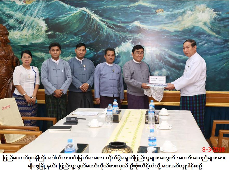 ကချင်ပြည်နယ်၊ ချီဖွေမြို့နှင့်ပန်ဝါမြို့တို့တွင် နေထိုင်ကြသော ချို့တဲ့သည့်ပြည်သူများနှင့် တိုက်ပွဲရှောင်စခန်းများတွင် နေထိုင်ကြသော ပြည်သူများအတွက် အဝတ်အထည်များ လှူဒါန်းခြင်းအခမ်းအနားကို လူမှုဝန်ထမ်း၊ ကယ်ဆယ်ရေးနှင့် ပြန်လည်နေရာချထားရေး ဝန်ကြီးဌာန၊ မေခလာခန်းမတွင် ပြုလုပ်ခဲ့ရာ ပြည်ထောင်စုဝန်ကြီး ဒေါက်တာဝင်းမြတ်အေးက (ကျား- ဝတ်ရှပ်အကျႌ ၁၅၀၀၊ မ- ဝတ်ရှပ်အကျႌ ၁၅၀၀) စုစုပေါင်း အဝတ်အထည် (၃၀၀၀) ထည်အား ချီဖွေမြို့နယ်၊ ပြည်သူ့လွှတ်တော်ကိုယ်စားလှယ် ဦးဇုံးတိန့်ထံသို့ ပေးအပ်လှူဒါန်းခဲ့ပါသည်။