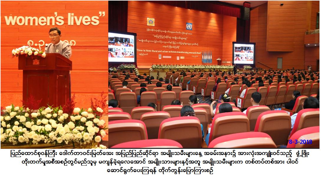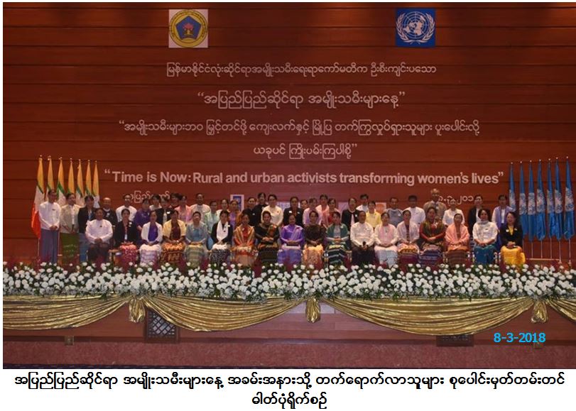 “၂၀၁၈ ခုနှစ်၊ အပြည်ပြည်ဆိုင်ရာ အမျိုးသမီးများနေ့အတွက် ကုလသမဂ္ဂက ချမှတ်ပေးတဲ့ ဦးတည်ချက် ဆောင်ပုဒ်ကတော့ “အမျိုးသမီးများဘဝ မြှင့်တင်ဖို့ ကျေးလက်နှင့်မြို့ပြ တက်ကြွလှုပ်ရှားသူများ ပူးပေါင်းလို့ ယခုပင် ကြိုးပမ်းကြပါစို့” ဖြစ်ပါတယ်။ ဒီတော့ မြန်မာနိုင်ငံ (GDP) ရဲ့ (၃၀) ရာခိုင်နှုန်းဟာ လယ်ယာ ကဏ္ဍကနေ ရရှိ နေပြီး နိုင်ငံလူဦးရေရဲ့ (၇၀) ရာခိုင်နှုန်းလောက်ဟာ ကျေးလက်ဒေသမှာပဲ နေထိုင်ကြတာဖြစ်လို့ ကျေးလက်နေ အမျိုးသမီးထုက အင်မတန်မှ အရေးကြီးပါတယ်။