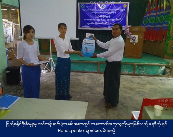 ဘေးအန္တရာယ်ဆိုင်ရာ စီမံခန့်ခွဲမှုဦးစီးဌာန၊ ပြည်ခရိုင်ဦးစီးမှူးရုံးမှ တာဝန်ရှိသူများသည် (၆-၃-၂၀၁၈)ရက်နေ့မှ (၈-၃-၂၀၀၈)ရက်နေ့အထိ ပြည်မြို့၊ မြို့နယ်အထွေထွေအုပ်ချုပ်ရေးမှူးရုံး၊ ပုလဲသီတာခန်းမ၌ ကျင်းပပြုလုပ်ခဲ့သော “သဘာဝဘေးလျော့ပါးရေးစေတနာ့ဝန်ထမ်း လူငယ်(ဆင့်ပွား)သင်တန်း”သင်တန်းဆင်းပွဲအား (၈-၃-၂၀၁၈) ရက်နေ့ ညနေ (၁၆:၀၀) နာရီတွင် ကျင်းပပြုလုပ်ခဲ့ကြောင်းနှင့် ပြည်ခရိုင်ဦးစီးမှူးမှ သင်တန်းဆင်းအမှာစကား ပြောကြားခဲ့ပြီးနောက် သင်တန်းသား/သူများအား သင်တန်းဆင်းလက်မှတ်များနှင့် အထောက်အကူပစ္စည်းများဖြစ်သည့် ရေဒီယို နှင့် Hand speaker များ ပေးအပ်ချီးမြှင့်ခဲ့ကြောင်း သတင်းရရှိပါသည်။