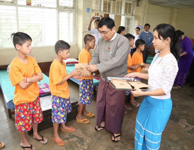 ထို့နောက် ပြည်ထောင်စုဝန်ကြီးသည်ရွှေဂုံတိုင် ကလေးပြုစုရေးဌာနဝင်းအတွင်းရှိ ရင်ခွင်မဲ့ကလေးငယ်များအားတွေ့ဆုံကာ မုန့်များဝေငှပြီး မွေးကင်းစရင်ခွင်မဲ့ကလေးငယ်များအား စောင့်ရှောက်ရန် အဆောက်အဦပြင်ဆင် မွမ်းမံနေမှုများကို လှည့်လည် ကြည့်ရှုခဲ့ပါသည်။