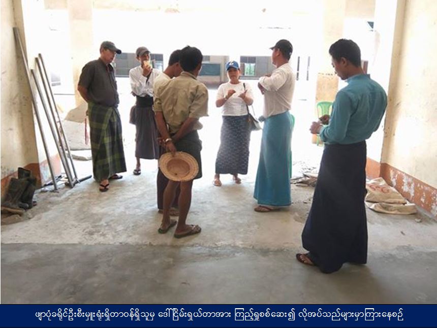 ဘေးအန္တရာယ်ဆိုင်ရာစီမံခန့်ခွဲမှုဦးစီးဌာန၊ ဖျာပုံခရိုင်ဦးစီးမှူးရုံးမှတာဝန်ရှိသူများသည် (၂၂-၃-၂၀၁၈)ရက်နေ့ ဖျာပုံမြို့နယ်၊ ဒေါ်ငြိမ်းကျေးရွာအုပ်စုတွင် သောက်သုံးရေရှားပါးသည့် ကျေးရွာများအတွက် World Visionမှ လှူဒါန်းသည့် ရေသန့်ဆေးထုပ်များ ထောက်ပံ့နိုင်ရန် ကျေးရွာအုပ်ချုပ်ရေးမှူးထံသို့ လွှဲပြောင်းပေးအပ်ခဲ့ကြောင်းနှင့် ဒေါ်ငြိမ်းရှယ်လ်တာသို့သွားရောက်၍ပြုပြင်ထိန်းသိမ်းရေးလုပ်ငန်းများဆောင်ရွက်နေမှုအားသွားရောက်စစ်ဆေးကြည့်ရှူခဲ့ပြီး လုပ်ငန်းများအချိန်မီပြီးစီးရေး၊ စံချိန်စံညွှန်းပြည့်မီရေးဆောင်ရွက်သွားရန် ကျေးရွာပြင်ဆင်ထိန်းသိမ်ရေးကော်မတီအဖွဲ့ဝင်များအား မှာကြားခြင်းများဆောင်ရွက်ခဲ့ကြောင်း သတင်းရရှိပါသည်။