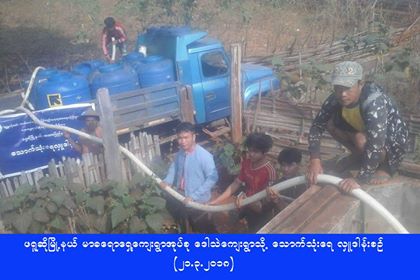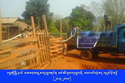 ဘေးအန္တရာယ်ဆိုင်ရာစီမံခန့်ခွဲမှုဦးစီးဌာန၊ ကယားပြည်နယ်ဦးစီးမှူးရုံးမှ တာဝန်ရှိသူများသည် (၂၁-၃-၂၀၁၈)ရက်နေ့တွင် ဒီးမော့ဆိုမြို့နယ်၊ ဒေါဖုကျေးရွာအုပ်စု၊ ဒေါပဲ့(စော်ဘွား)ကျေးရွာနှင့် ဒေါဆိုခူကျေးရွာ၊ ဖရူဆိုမြို့နယ် မာခရောရှေ့ကျေးရွာအုပ်စု ဒေါသဲကျးရွာ၊ ဒေါဆီးခူကျေးရွာနှင့် ဒေါကလော်လဲကျးရွာများသို့ သောက်သုံးရေများ သွားရောက်ဖြန့်ဝေပေးခဲ့ကြောင်း သတင်းရရှိပါ သည်။