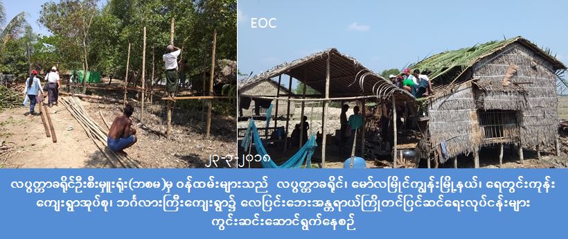 လူမှုဝန်ထမ်း၊ ကယ်ဆယ်ရေးနှင့် ပြန်လည်နေရာချထားရေးဝန်ကြီးဌာန၊ ဘေးအန္တရာယ်ဆိုင်ရာစီမံခန့်ခွဲမှုဦးစီးဌာန၊ လပွတ္တာ ခရိုင်ဦးစီးမှူးရုံးမှ ဝန်ထမ်းများသည် (၂၃-၃-၂၀၁၈) ရက်နေ့တွင် လပွတ္တာခရိုင်၊ မော်လမြိုင်ကျွန်းမြို့နယ်၊ ရေတွင်းကုန်း ကျေးရွာအုပ်စု၊ ဘင်္ဂလားကြီးကျေးရွာ၌ လေပြင်းဘေးအန္တရာယ်ကြိုတင်ပြင်ဆင် ရေးလုပ်ငန်းများဖြစ်သော နေအိမ်များ ပြုပြင်ပေးခြင်း၊ အိမ်အနီးရှိကျိုးကျနိုင်သော သစ်ပင်၊ သစ်ကိုင်းများအား ခုတ်ထွင်ရှင်းလင်းပေးခြင်း၊ လေပြင်းဘေးကြိုတင် ပြင်ဆင်ရေးနှင့် စပ်လျဉ်း၍ ပြည်သူသို့ပန်ကြားချက် ဗွီနိုင်းပိုစတာစိုက်ထူခြင်း၊ လက်ကမ်းစာဆောင်နှင့် နံရံကပ်ပိုစတာ ဖြန့်ဝေခြင်းလုပ်ငန်းများအား ကျေးရွာကော်မတီအဖွဲ့ဝင်များ၊ ကျေးရွာလူငယ်များ၊ ကျေးရွာနေပြည်သူများနှင့်ပူးပေါင်း၍ ဆောင်ရွက်လျက်ရှိပါကြောင်း သိရှိရပါသည်။