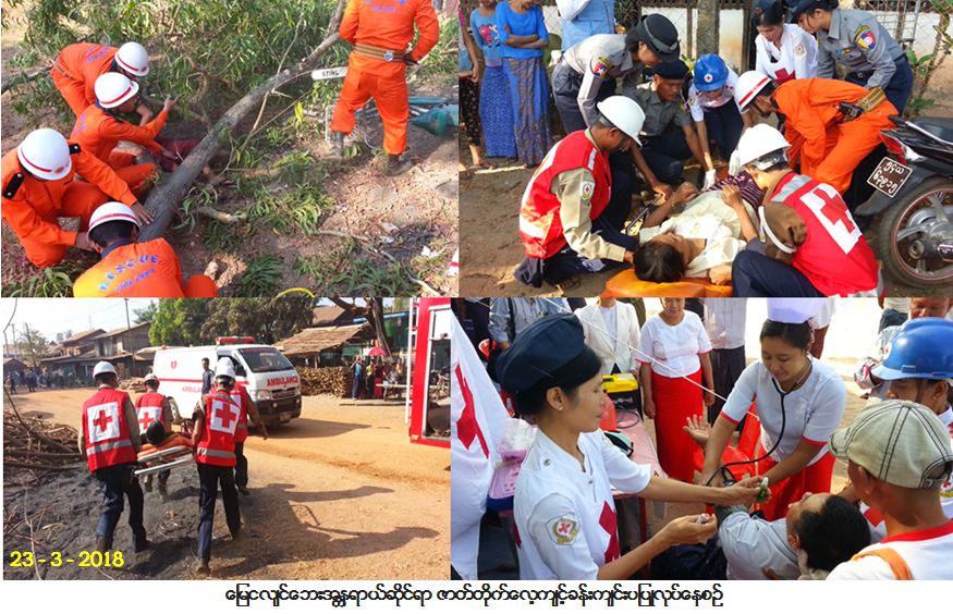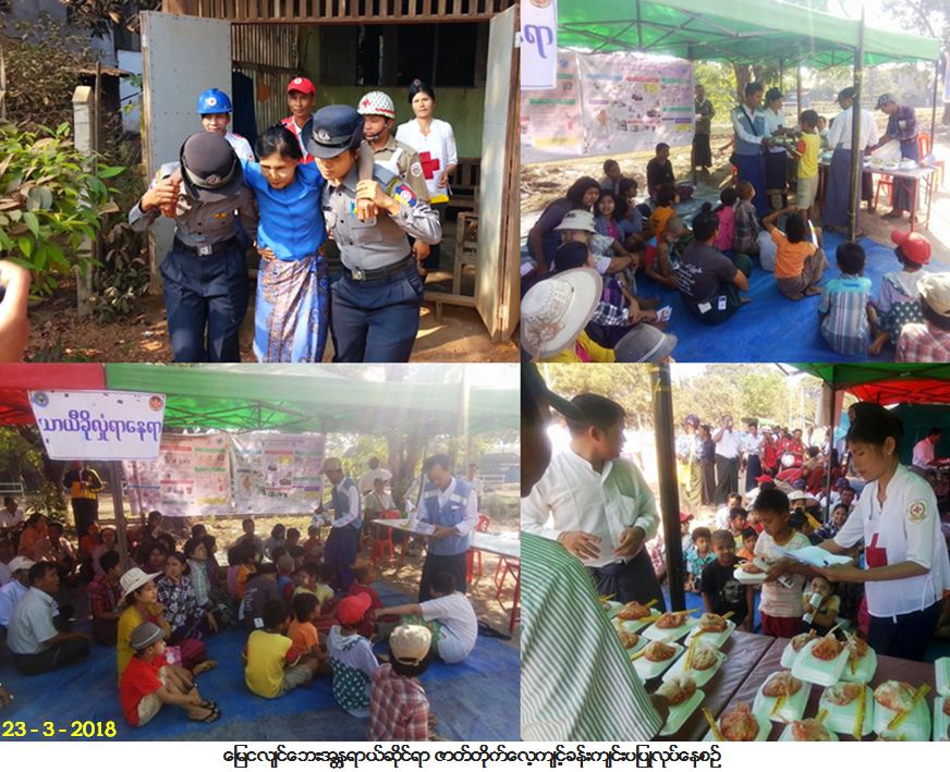 ဘေးအန္တရာယ်ဆိုင်ရာစီမံခန့်ခွဲမှုဦးစီးဌာန၊ ပြည်ခရိုင်ဦးစီးမှူးရုံးမှ တာဝန်ရှိသူများသည် (၂၃-၃-၂၀၁၈) ရက် နေ့တွင် ပဲခူးတိုင်းဒေသကြီး၊ ပြည်ခရိုင်၊ ပေါင်းတည်မြို့နယ်၊ ဈေး (၂) ရပ်ကွက် (၃) လမ်း၌ မြို့ပေါ် ရပ်ကွက်များရှိ ပြည်သူများ၊ ပေါင်းတည်မြို့နယ် သဘာဝဘေးအန္တရာယ်ကြိုတင်ကာကွယ်ရေးအဖွဲ့၊ မြို့နယ် ထွေ/အုပ်၊ မီးသတ်ဦးစီးဌာန၊ ကျန်းမာရေး၊ ရဲတပ်ဖွဲ့၊ ပြန်/ဆက်၊ ပညာရေး၊ ယာဉ်စည်းကမ်းထိန်းသိမ်းရေး ကော်မတီ၊ ကြက်ခြေနီ၊ ရပ်/ကျေးအုပ်ချုပ်ရေးမှူးများ စုစုပေါင်း အင်အား (၂၁၇) ဦးခန့်ဖြင့် မြေငလျင်ဘေး အန္တရာယ်ဇာတ်တိုက်လေ့ကျင့်ခန်းအား ကျင်းပပြုလုပ်ခဲ့ပြီး အသိပညာပေးလက်ကမ်းစာစောင်များနှင့် စားစရာ များဝေငှပေးခဲ့ပါသည်။ အဆိုပါ ဇာတ်တိုက်လေ့ကျင့်ခန်းသို့ မြို့နယ်အဆင့် ဌာနဆိုင်ရာများ၊ ရပ်ကွက်နေ ပြည်သူများ လာရောက်လေ့လာခဲ့ကြကြောင်း သတင်းရရှိပါသည်။