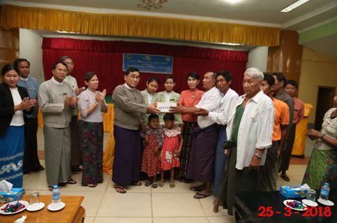 ဆက်လက်၍ ပြည်ထောင်စုဝန်ကြီးနှင့်အဖွဲ့သည် ကျောက်တံခါးမြို့နယ် အထွေထွေအုပ်ချုပ်ရေးမှူးရုံး၊ အစည်းအဝေးခန်းမတွင် မသန်စွမ်းသူ(၆၉၀)ဦးအတွက် ထောက်ပံ့ငွေကျပ်(၃၄၅)သိန်းကိုလည်းကောင်း၊ ညောင်လေးပင်မြို့နယ် စည်ပင်သာယာ ရေးရုံး သီရိရတနာခန်းမတွင် မသန်စွမ်းသူ(၁၄၈)ဦးအတွက် ထောက်ပံ့ငွေကျပ် (၇၄)သိန်းနှင့် အမျိုးသမီးဦးဆောင်သော မိသားစု(၅၅၈)ဦးအတွက် ထောက်ပံ့ငွေ ကျပ် (၈၃.၇)သိန်းတို့ကို ပေးအပ်ခဲ့ရာ တာဝန်ရှိသူများကလက်ခံရယူပြီး ပဲခူးတိုင်းဒေသကြီးလွှတ်တော် ဒုတိယဥက္ကဌ ဦးကြည်ဇင်နှင့် အမျိုးသားလွှတ်တော်ကိုယ်စားလှယ် ဒေါ်စန်းစန်းမြင့်တို့က ကျေးဇူးတင်စကား များပြန်လည် ပြောကြားခဲ့ကြပါ သည်။ အထက်ပါအခန်းအနားများသို့ ပဲခူးတိုင်းဒေသကြီး လွှတ်တော်ဒုတိယ ဥက္ကဌ ဦးကြည်ဇင်၊ လွှတ်တော်ကိုယ်စားလှယ်များ၊ လူမှုဝန်ထမ်းဦးစီးဌာနနှင့် ပြန်လည် ထူထောင်ရေးဦးစီးဌာနများမှ ညွှန်ကြားရေးမှူးချုပ်များ၊ သက်ဆိုင်ရာတာဝန်ရှိသူများ၊ ဒေသခံပြည်သူများတက်ရောက်ပြီး လူမှုဝန်ထမ်း၊ ကယ်ဆယ်ရေးနှင့် ပြန်လည်နေရာချ ထားရေးဝန်ကြီးဌာန၏ လူမှုကာကွယ်စောင့်ရှောက်ရေးထောက်ပံ့မှု စုစုပေါင်းမှာ ကျပ် (၂၁၆၉.၉) သိန်းဖြစ်ကြောင်း သတင်းရရှိပါသည်။