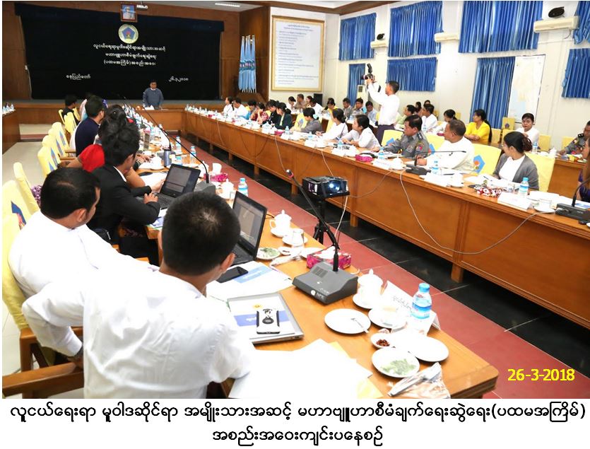၂၀၁၈ခုနှစ်၊ မတ်လ(၂၆)ရက်နေ့တွင်၊ လူမှုဝန်ထမ်း၊ ကယ်ဆယ်ရေးနှင့် ပြန်လည်နေရာချထားရေးဝန်ကြီးဌာန၊ စုပေါင်းခန်းမ၌ လူငယ်ရေးရာမူဝါဒဆိုင်ရာ အမျိုးသားအဆင့် မဟာဗျူဟာစီမံချက်ရေးဆွဲရေး (ပထမအကြိမ်) အစည်းအဝေး ကျင်းပပြုလုပ်ခဲ့ပါ သည်။ အဆိုပါအစည်းအဝေးသို့ ဆက်စပ်ဝန်ကြီးဌာန၊ ဦးစီးဌာနများမှ ကိုယ်စားလှယ်များ၊ တိုင်းဒေသကြီး/ပြည်နယ်များမှ လူငယ် ကိုယ်စားလှယ်များ၊ စုစုပေါင်း(၆၀)ဦး တက်ရောက်ခဲ့ပါသည်။