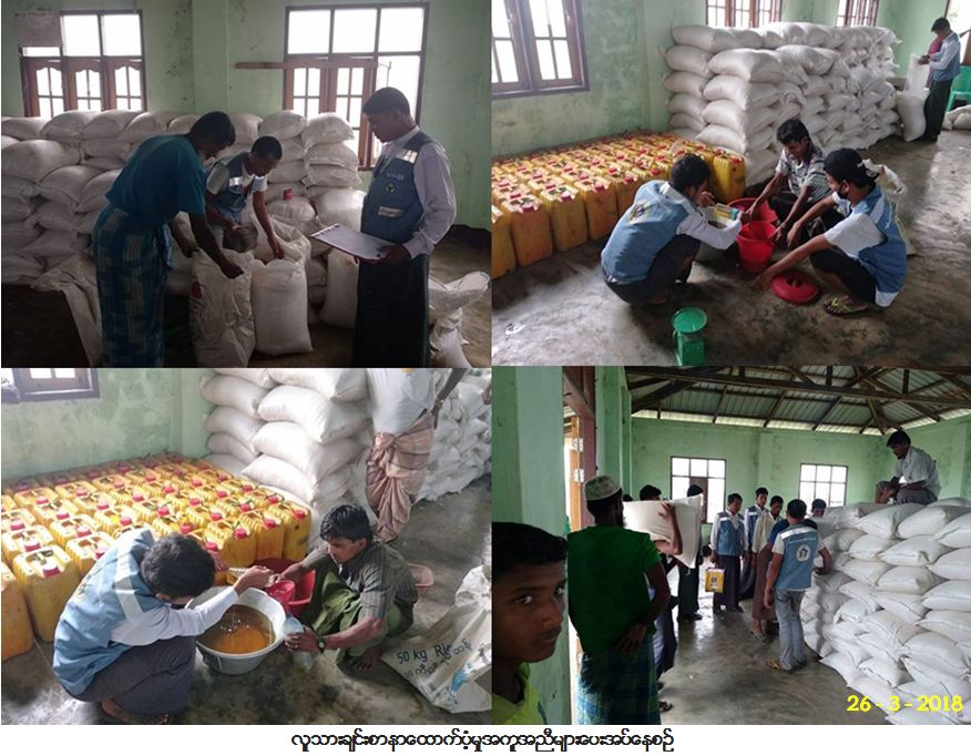 ဘေးအန္တရာယ်ဆိုင်ရာစီမံခန့်ခွဲမှုဦးစီးဌာန၊ မောင်တောခရိုင်ဦးစီးမှူးရုံးမှတာဝန်ရှိသူများသည် (၂၆-၃-၂၀၁၈) ရက်နေ့တွင် UEHRD စေတနာ့ဝန်ထမ်းလူငယ်အစီအစဉ် (၅) ကြိမ်မြောက်နှင့် (၆) ကြိမ်မြောက်အကြား လူသားချင်းစာနာထောက်ပံ့မှုအကူအညီများ အဆက်မပြတ်စေရေးအတွက် မောင်တောမြို့နယ်၊ သရက်အုပ် ကျေးရွာအုပ်စု၊ သရက်မင်္ဂလာအာရှိတ်ဂျာကျေးရွာမှ အိမ်ထောင်စု (၂၃၃) စု၊ လူဦးရေ (၂၄၈၇) ဦးအတွက် ဆန် (၇၇၇) အိမ်၊ (၄) ပြည် (၄) ဘူး၊ ဆီ (၉၃၂.၆၂၅) ပိဿာ၊ ပဲ (၃၇၃၀.၅) ပိဿာနှင့် ဆား (၁၈၆.၅၂၅) ပိဿာတို့အား သွားရောက်ထောက်ပံ့ပေးအပ်ခဲ့ကြောင်း သတင်းရရှိပါသည်။
