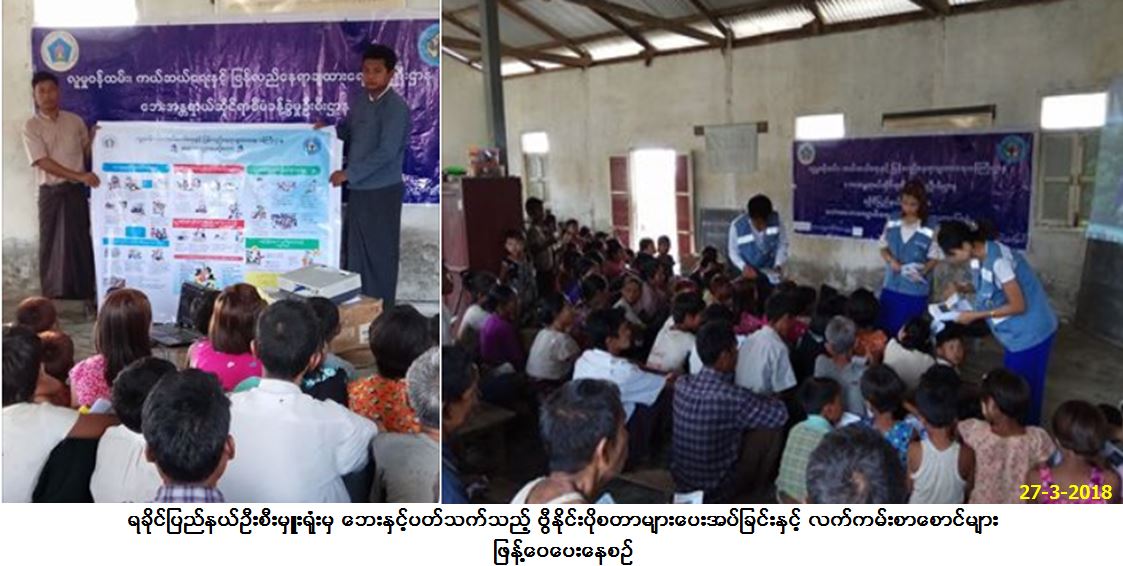 ဘေးအန္တရာယ်ဆိုင်ရာစီမံခန့်ခွဲမှုဦးစီးဌာန၊ ရခိုင်ပြည်နယ်ဦးစီးမှူးရုံးမှှ တာဝန်ရှိသူများသည် (၂၇-၃-၂၀၁၈)ရက်နေ့ (၁၅း၃၀)အချိန်မှ (၁၆း၃၀)အချိန်ထိ ပုဏ္ဏားကျွန်းမြို့နယ်၊ ပဒေသာကျေးရွာ၌ လူဦးရေ (၁၂၀)ဦးခန့်အား သဘာဝဘေး အသိပညာပေးဟောပြောပွဲ ပြုလုပ်ပြီး လက်ကမ်းစာစောင်များ၊ သဘာဝဘေးဗွီနိုင်းပိုစတာများနှင့် ခေါက်ဆွဲခြောက်များဖြန့်ဝေပေးခဲ့ကြောင်း သတင်းရရှိပါသည်။