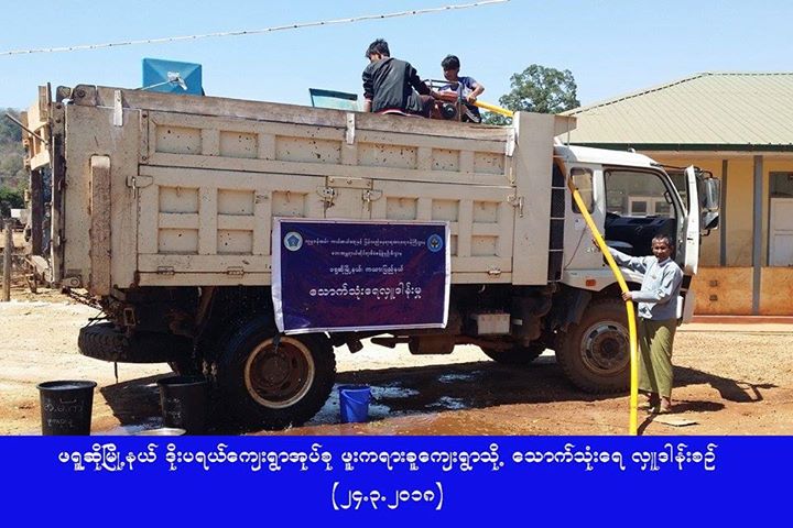 ဘေးအန္တရာယ်ဆိုင်ရာစီမံခန့်ခွဲမှုဦးစီးဌာန၊ ကယားပြည်နယ်ဦးစီးမှူးရုံးမှ တာဝန်ရှိသူများသည် (၂၃-၃-၂၀၁၈)ရက်နေ့တွင်ဒီးမော့ဆိုမြို့နယ်၊ လိုဘာခိုကျေးရွာအုပ်စု၊ ယပ်ခူကျေးရွှာ၊ (၂၄-၃-၂၀၁၈)ရက်နေ့နှင့် (၂၅.၃.၂၀၁၈)ရက်နေ့တို့တွင် ဖရူဆိုမြို့နယ်၊ ဒိုးပရယ်ကျေးရွှာအုပ်စု၊ ဖူးကရားခူကျေးရွှာများသို့ သောက်သုံးရေများ သွားရောက်ဖြန့်ဝေခဲ့ကြောင်း သတင်းရရှိပါသည်။