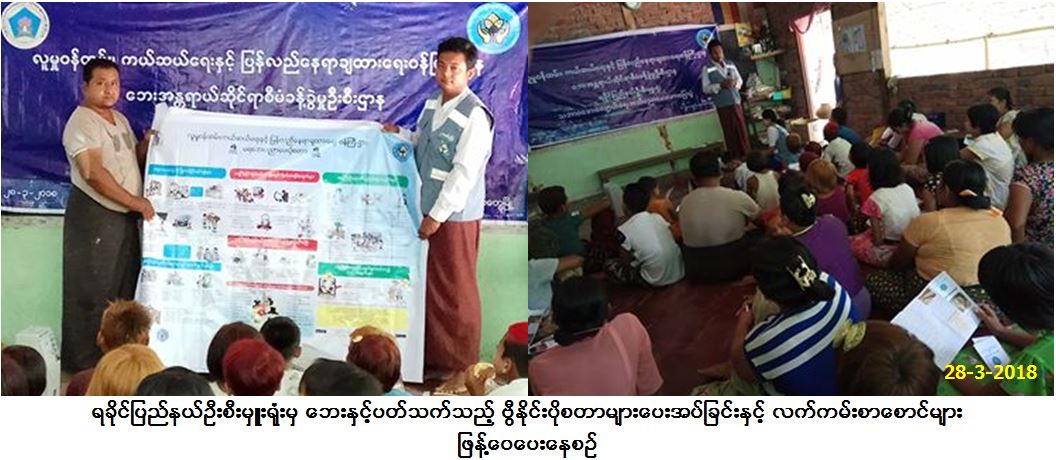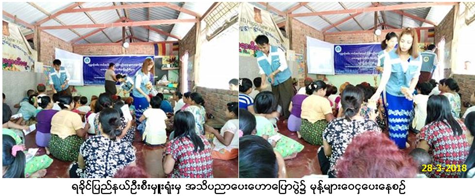 ဘေးအန္တရာယ်ဆိုင်ရာစီမံခန့်ခွဲမှုဦးစီးဌာန၊ ရခိုင်ပြည်နယ်ဦးစီးမှူးရုံးမှှ တာဝန်ရှိသူများသည် (၂၈-၃-၂၀၁၈)ရက်နေ့ (၁၂း၃၀)အချိန်မှ (၁၄း၃၀)အချိန်ထိ စစ်တွေမြို့နယ်၊ ပျားလည်ချောင်းကျေးရွာ၌ လူဦးရေ (၁၀၀)ဦးခန့်အား သဘာဝဘေး အသိပညာပေးဟောပြောပွဲ ပြုလုပ်ပြီး လက်ကမ်းစာစောင်များ၊ သဘာဝဘေးဗွီနိုင်းပိုစတာများပေးအပ်ခြင်းနှင့် မုန့်များဝေငှပေးခဲ့ကြောင်း သတင်းရရှိပါသည်။