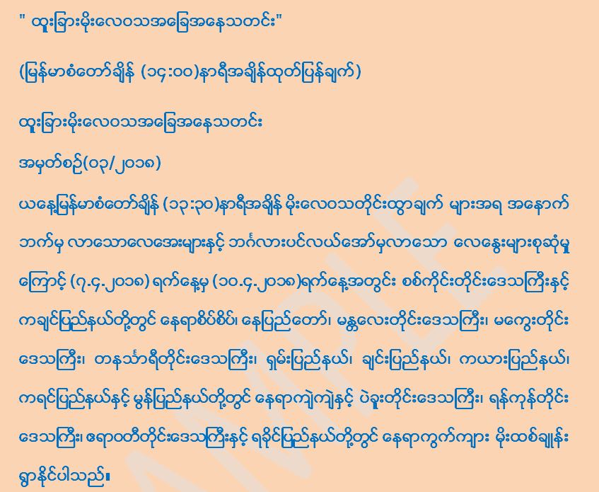 (မြန်မာစံတော်ချိန် (၁၄:၀၀)နာရီအချိန်ထုတ်ပြန်ချက်)