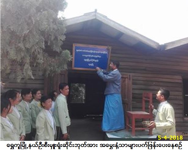 ဘေးအန္တရာယ်ဆိုင်ရာစီမံခန့်ခွဲမှုဦးစီးဌာန၊ ဗန်းမော်ခရိုင်ဦးစီးမှူးမှ တာဝန်ရှိသူများသည် (၅-၄-၂၀၁၈)ရက်နေ့ နေ့လည်(၂း၀၀)နာရီ အချိန်တွင် ရွှေကူမြို့နယ်အထွေထွေအုပ်ချုပ်ရေးဦးစီးဌာန၌ ရွှေကူမြို့နယ်ဦးစီးမှူးရုံးဆိုင်းဘုတ်အား အမွှေးနံသာများပက်ဖြန်း၍ ဖွင့်လှစ်ခဲ့ရာ မြို့နယ်အုပ်ချုပ်ရေးမှူးနှင့်ဌာန ဆိုင်ရာများဝန်ထမ်းများ (၃၀) ဦးတက်ရောက်ခဲ့ပြီး ဘေးအန္တရာယ်နှင့်ပတ်သက်သည့် နံရံကပ်ပိုစတာများ၊ လက်ကမ်းစာစောင်များဖြန့်ဝေပေးခဲ့ကြောင်း သတင်းရရှိပါသည်။