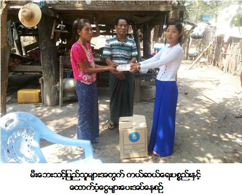 ပြည်ထောင်စုနယ်မြေ၊ နေပြည်တော်တိုင်းဦးစီးမှူးရုံးမှ တာဝန်ရှိသူများသည် (၆.၄.၂၀၁၈) ရက်နေ့တွင် ပျဉ်းမနားမြို့နယ်၊ ပြူတွင်းအုပ်စု ဂဲကြီးသာစည်ကျေးရွာ မီးဘေးသင့် (၁) အိမ်အတွက် အိမ်ဆောက်ပစ္စည်းဖိုး (၈၀၀၀ဝိ)၊ လူဦးရေ (၃x၂၁၀၀) (၆၃၀၀)၊ စုစုပေါင်း (၈၆၃၀၀)ကျပ်နှင့် ကယ်ဆယ်ရေးပစ္စည်းများအား ပြည်သူများလက်ဝယ်သို့ (၇.၄.၂၀၁၈) ရက်နေ့ (၁၀း၀၀)အချိန်တွင် သွားရောက်ထောက်ပံ့ပေးခဲ့ကြောင်း သတင်းရရှိပါသည်။