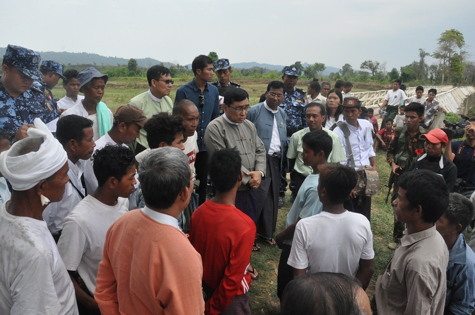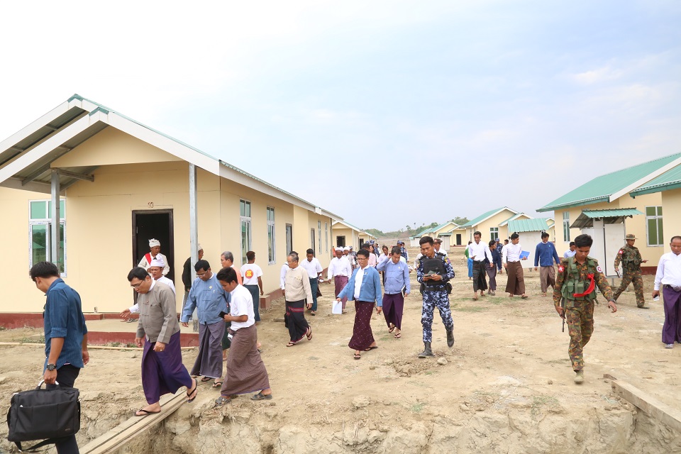 ရခိုင်ပြည်နယ်ဆိုင်ရာ အကြံပြုချက်များအပေါ် အကောင်အထည်ဖော် ဆောင်ရွက်ရေးကော်မတီ ဥက္ကဌ၊ လူမှုဝန်ထမ်း၊ ကယ်ဆယ်ရေးနှင့် ပြနလည်နေရာချထားရေးဝန်ကြီးဌာန၊ ပြည်ထောင်စုဝန်ကြီး၊ ဒေါက်တာဝင်းမြတ်အေးနှင့် ရခိုင်ပြည်နယ်ဝန်ကြီးချုပ် ဦးညီပုတို့သည် ဒုတိယဝန်ကြီးဦးစိုးအောင်၊ တာဝန်ရှိသူများနှင့်အတူ (၁၈-၄-၂၀၁၈) ရက်နေ့ နံနက်ပိုင်းတွင် စစ်တွေမြို့မှ မောင်တောမြို့သို့ ရဟတ်ယာဉ်ဖြင့် ထွက်ခွာရာ ပထမဦးစွာ သစ်တုံးနားခွဆုံကျေးရွာသို့ ရောက်ရှိပြီး ပြန်လည်တည်ဆောက်ပြီးသည့်အိမ်များတွင် မြိုတိုင်းရင်းသား အိမ်ထောင်စု (၃၅) စုအား ပြန်လည်နေရာချထားပေးမည့် အခြေအနေတို့ကိုကြည့်ရှုပြီး ၎င်းတို့၏ လိုအပ်ချက်များ တင်ပြမှုအပေါ် ဆောင်ရွက်ပေးရမည့် လုပ်ငန်းများနှင့်ပတ်သက်၍ ညှိနှိုင်းဆောင်ရွက်ပေးခဲ့ပါသည်။ ထိုမှတဆင့် ပြည်ထောင်စုဝန်ကြီးနှင့်အဖွဲ့သည် ခုံတိုင်ကျေးရွာတွင် ဒေါ်ခင်ကြည်ဖောင်ဒေးရှင်းနှင့် နယ်စပ်ရေးရာဝန်ကြီးဌာနတို့မှ နေအိမ်များတည်ဆောက်ပြီးစီးမှုနှင့် နေရာချထားပေးမှုအခြေအနေကို ကြည့်ရှုပြီး လိုအပ်သည်များ ညှိနှိုင်း ပေါင်းစပ် ဆောင်ရွက်ပေးခဲ့ပါသည်။