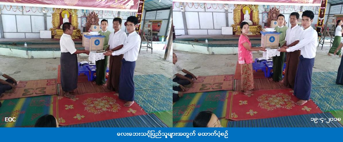 ဘေးအန္တရာယ်ဆိုင်ရာစီမံခန့်ခွဲမှုဦးစီးဌာန၊ သရက်ခရိုင်ဦးစီးမှူးရုံးမှ တာဝန်ရှိသူများသည် (၁၆-၄-၂၀၁၈) ရက်နေ့၊ (၁ရး၂၀) နာရီအချိန်တွင် မိုးသည်းထန်စွာရွာသွန်းပြီး လေပြင်းများတိုက်ခတ်မှုကြောင့် မင်းတုန်းမြို့နယ်၊ တံတားကျေးရွာအုပ်စု၊ တံတား(အရှေ့)ကျေးရွာ၊ တံတား(ရွာမ)ကျေးရွာနှင့် ဇီးတောကျေးရွာတို့၌ အမိုးလန်ခဲ့သည့် နေအိမ်(၁၃)လုံး၊ အိမ်ထောင်စု(၁၃)စု၊ လူဦးရေ (၅၇) ဦးဘေးသင့်ခဲ့ရာ လူဦးရေ (၅၇) ဦးအတွက် ဆန်ရိက္ခာဖိုး(၇)ရက်စာ (၁၁၉၇၀၀ိ/-)၊ အမိုးလန်နေအိမ်(၁၃)လုံးအတွက် အိမ်ဆောက်ပစ္စည်းဖိုး (၃၇၀၀၀၀ိ/-)၊ ရန်ပုံငွေစုစုပေါင်း (၄၈၉၇၀၀ိ/-) နှင့် ကယ်ဆယ်ရေးပစ္စည်း(၆)မျိုး (၁၃) အိမ်ထောင်စာတို့ကို (၁၉-၄-၂၀၁၈) ရက်နေ့တွင် မင်းတုန်းမြို့နယ်အထွေထွေအုပ်ချုပ်ရေးဦးစီးဌာနမှ တာဝန်ရှိသူများနှင့်အတူ ဘေးသင့်ပြည်သူများလက်ဝယ်သို့ သွားရောက်ထောက်ပံ့ပေးအပ်ခဲ့ကြောင်း သိရှိရပါသည်။