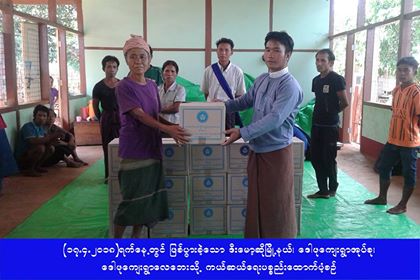 လူမှုဝန်ထမ်း၊ ကယ်ဆယ်ရေးနှင့်ပြန်လည်နေရာချထားရေးဝန်ကြီးဌာန၊ ဘေးအန္တရာယ်ဆိုင်ရာစီမံခန့်ခွဲမှုဦးစီးဌာန၊ ကယားပြည်နယ် ဦးစီးမှူးရုံးမှ တာဝန်ရှိသူများသည် ၁၇-၄-၂၀၁၈)ရက်နေ့တွင် လေဘေးဖြစ်ပွားခဲ့သော ဒီးမော့ဆိုမြို့နယ်၊ ဒေါဖုကျေးရွာအုပ်စုရှိ ကျေးရွာ (၄)ရွာ၊ အိမ်ထောင်(၁၇)အိမ်ထောင်နှင့် ငွေတောင်ကျေးရွာအုပ်စု၊ ဒေါခလိုက်လင်းကျေးရွာ(၂)အိမ်ထောင်၊ စုစုပေါင်း (၁၉) အိမ်ထောင်အတွက် ကယ်ဆယ်ရေးပစ္စည်း(၆)မျိုး(၁၉)အိမ်ထောင်စာ၊ အိမ်ဆောက်ပစ္စည်းဖိုး(၁၆၁၅၇၅၀ိ/-)ကျပ်၊ လူဦးရေ(၆၀)ဦး အတွက် ဆန်ဖိုး(၁၂၆၀၀၀ိ/-)ကျပ်၊ စုစုပေါင်း(၁၇၄၂၇၅၀ိ/-)ကျပ်ကို (၁၉-၄-၂၀၁၈)ရက်နေ့တွင် သွားရောက်ထောက်ပံံ့ပေးအပ်ခဲ့ ကြောင်း သတင်းရရှိပါသည်။