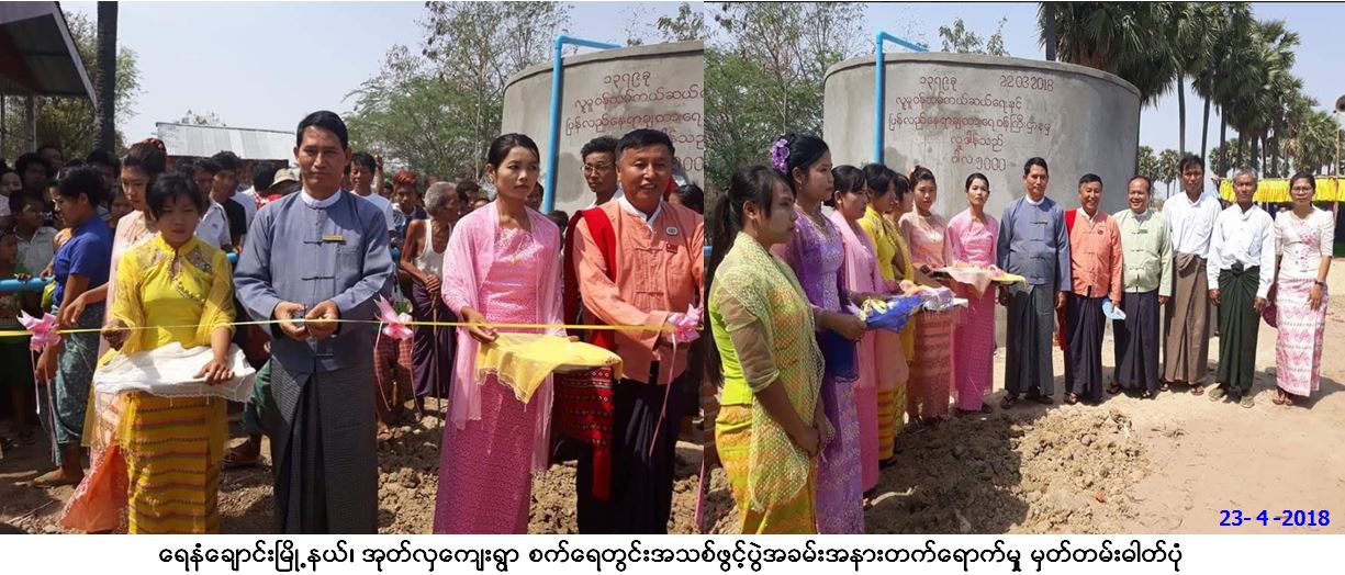 လူမှုဝန်ထမ်း၊ ကယ်ဆယ်ရေးနှှှှင်ပြန်လည်နေရာချ ထားရေးဝန်ကြီးဌာန၊ ဘေးအန္တရာယ်ဆိုင်ရာစီမံ ခန့်ခွဲမှုဦးစီးဌာန၊ မကွေးတိုင်းဒေသကြီးဦးစီးမှူးရုံးမှ တာဝန်ရှိသူများသည်(၂၂-၄-၂၀၁၈)ရက်နေ့ (၀၉:၃၀)နာရီဝန်ကြီးဌာန၏ လှူဒါန်းငွေဖြင့် ဆောင်ရွက်သည့် ရေနံချောင်း မြို့နယ်၊ ညောင်ပင်အိုင့်ကျေးရွာအုပ်စု၊ အုတ်လှကျေးရွာ စက်ရေတွင်းသစ်ဖွင့်ပွဲ အခမ်းအနားတွင် အမှာစကားပြောကြား၍ ဖဲကြိုးဖြတ်ဖွင့်လှစ်ပေး ခဲ့ပါသည်။ စက်ရေတွင်းသစ်ဖွင့်ပွဲသို့ တိုင်းဒေသကြီးလွှတ်တော်ကိုယ်စားလှယ်ဦးသိန်းလှ၊ မြို့နယ်အုပ်ချုပ်ရေးမှူးနှင့် ရပ်မိ ရပ်ဖတို့ တက်ရောက်ကြပြီး ရေအနက် ပေ(၇၀၀)တွင် ရေချိုထွက်ရှိသဖြင့် ဒေသခံပြည်သူများ ဝမ်းသာပျော်ရွင်လျက်ရှိကြောင်း သတင်းရရှိပါသည်။