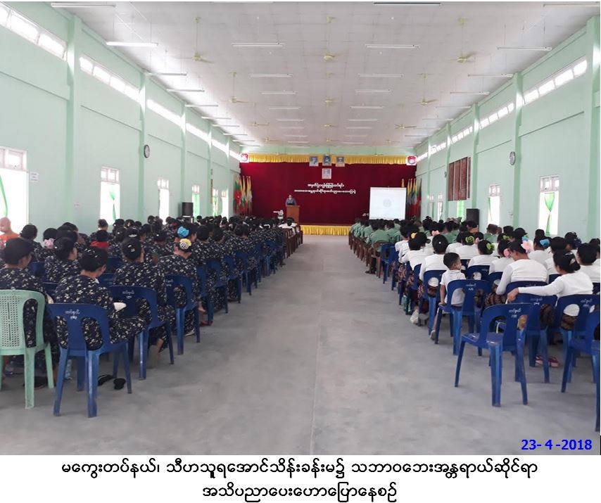 လူမှုဝန်ထမ်း၊ ကယ်ဆယ်ရေးနှင့်ပြန်လည်နေရာချထားရေးဝန်ကြီးဌာန၊ ဘေးအန္တရာယ်ဆိုင်ရာစီမံခန့်ခွဲမှုဦးစီးဌာန၊ မကွေးတိုင်းဒေသ ကြီးဦးစီးမှူးရုံးမှ တာဝန်ရှိသူများသည် (၂၃-၄-၂၀၁၈)ရက်နေ့တွင် မကွေးတပ်နယ်၊ သီဟသူရအောင်သိန်းခန်းမ၌ အရာရှိ၊ စစ်သည်အိမ်ထောင်သည် ရဲမေအင်အား (၂၁၂)ဦးတို့အား ဘေးအန္တရာယ်စီမံခန့်ခွဲမှုလုပ်ငန်းများ၊ ငလျင်ဘေးအန္တရာယ်နှင့် ငလျင်လှုပ်စဉ်ဘေးကင်းစွာနေထိုင်နည်းတို့ကို ဆွေးနွေးဟောပြောခဲ့ပြီး၊ ငလျင်သရုပ်ပြလေ့ကျင့်ခြင်းတို့ကိုလည်း စုပေါင်းလေ့ကျင့်ခဲ့ကြောင်း သတင်း ရရှိပါသည်။