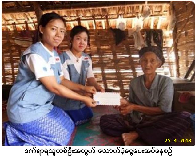 ဘေးအန္တရာယ်ဆိုင်ရာစီမံခန့်ခွဲမှုဦးစီးဌာန၊ ကချင်ပြည်နယ်ဦးစီးမှူးရုံးမှ တာဝန်ရှိသူများသည် ကချင်ပြည်နယ် ဝိုင်းမော်မြို့နယ် အောင်မြေ(၂)ရပ်ကွက်အရှေ့ဘက်(၈)မိုင်အကွာ ဂျာခေါင်ယန်ကွင်းတောထဲတွင် (၁၆-၄-၂၀၁၈)ရက်နေ့၌ ဖြစ်ပွားသော မိုင်းပေါက် ကွဲမှှုကြောင့် ဒဏ်ရာရရှိသူတစ်ဦးအား ထောက်ပံ့ငွေ (၅၀၀၀၀)ကျပ်အား (၂၅-၄-၂၀၁၈)ရက်နေ့တွင် ကွင်းဆင်းထောက်ပံ့ပေးအပ်ခဲ့ ကြောင်း သတင်းရရှိပါသည်။