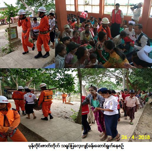 ဘေးအန္တရာယ်ဆိုင်ရာစီမံခန့်ခွဲမှုဦးစီးဌာန၊ ဖျာပုံခရိုင်ဦးစီးမှူးရုံးမှ တာဝန်ရှိသူများသည် (၂၆-၄-၂၀၁၈) ရက် နေ့တွင် ဘိုကလေးမြို့နယ်၊ မလော့ကျေးရွာအုပ်စု၊ မလော့မြစ်တန်းကျေးရွာရှိ school cum shelter တွင် ဘိုကလေးမြို့နယ် အထွေထွေအုပ်ချုပ်ရေးဌာနဦးဆောင်မှုဖြင့် ဖျာပုံခရိုင်ဘေးအန္တရာယ်ဆိုင်ရာစီမံခန့်ခွဲမှုဦးစီး ဌာန၊ world vision၊ ဘိုကလေးမြို့နယ် သဘာဝဘေးအန္တရာယ်စီမံခန့်ခွဲမှု ကော်မတီဝင်များ၊ ကျေးရွာသူ/ သားများ စုစုပေါင်းအင်အား (၄၅၀) ဦးဖြင့် မုန်တိုင်းဇာတ်တိုက် သရုပ်ပြလေ့ကျင့်ခြင်းအား ဆောင်ရွက်ခဲ့ပါ သည်။ အဆိုပါသရုပ်ပြပွဲသို့ ဘိုကလေးမြို့နယ်၊ ဧရာဝတီတိုင်းဒေသကြီးလွှတ်တော်ကိုယ်စားလှယ် ဦးအောင်ခင်ဗိုလ် တက်ရောက်အမှာစကားပြောကြားခြင်း၊ ဘေးအန္တရာယ်ဆိုင်ရာစီမံခန့်ခွဲမှုဦးစီးဌာန တာဝန် ရှိသူတစ်ဦးမှ ဌာနဆောင်ရွက်နေမှုများပြောကြားခဲ့ပြီး လက်ကမ်းစာစောင်နှင့် ဗီနိုင်းပိုစတာများဖြန့်ဝေပေးခဲ့ ပါကြောင်း သတင်းရရှိပါသည်။