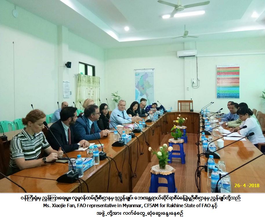 ဘေးအန္တရာယ်ဆိုင်ရာစီမံခန့်ခွဲမှုဦးစီးဌာန၏ ညွှန်ကြားရေးမှူးချုပ်မှလည်း မိမိတို့ဦးစီးဌာနသည် ဘေးအန္တရာယ်ခံစားနေရသည့် ပြည်သူများအား လူသားချင်စာနာမှုအကူအညီများ ထောက်ပံ့ဆောင်ရွက်ပေးရေးတွင် အဓိကဦးစီးဌာနဖြစ်ပါကြောင်း၊ နိုင်ငံတကာ စံချိန်နှင့်အညီ ဆောင်ရွက်ပေးနေကြောင်း၊ ယခု FAO သည် Crop and Food Security Assessment Mission-CFSAM for Rakhine State နှင့်စပ်လျဉ်း၍ ဆောင်ရွက်ပြီးပါက မိမိတို့ဦးစီးဌာနသို့လည်း အစီရင်ခံစာတင်ပြပေးစေ လိုပါကြောင်း စသည့်ဖြင့် ဆွေးနွေးခဲ့ပါသည်။