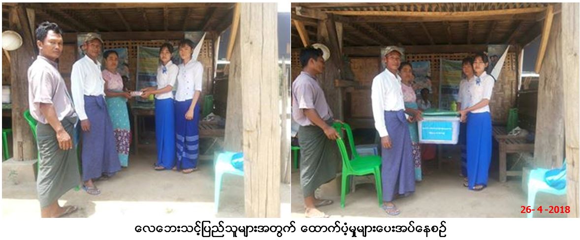 ဘေးအန္တရာယ်ဆိုင်ရာစီမံခန့်ခွဲမှုဦးစီးဌာန၊ ပြည်ထောင်စုနယ်မြေ နေပြည်တော်တိုင်းဦးစီးမှူး ရုံးမှ တာဝန်ရှိသူများသည် ပြည်ထောင်စုနယ်မြေ နေပြည်တော်ဘေးအန္တရာယ်ဆိုင်ရာစီမံခန့်ခွဲမှုတိုင်းဦးစီးမှူးရုံး၏ နယ်မြေအတွင်း (၂၄.၄.၂၀၁၈ေ) ရက်နေ့တွင်ဖြစ်ပွားခဲ့သောလေဘေးကြောင့် လယ်ဝေးမြို့နယ်၊ ပြောင်ခေါင်းကြီးကျေးရွာအုပ်စု၊ ကန်ဇွန်းခင်းကျေးရွာတွင် ပြိုလဲ(၂)အိမ်အတွက် အိမ်ဆောက်ပစ္စည်းဖိုး (၂x၁၀၀,၀၀၀ိ/-)(၂၀၀၀၀၀ိ/-)နှင့် ကယ်ဆယ်ရေးပစ္စည်း(၁၆)မျိုး(၂)အိမ်ထောင် စာအားလည်းကောင်း၊ အမိုးလန်(၂)အိမ်အတွက် အိမ်ဆောက်ပစ္စည်းဖိုး (၅,၀၀၀ိ/-) ကယ်ဆယ်ရေး ပစ္စည်း(၉)မျိုး(၂)အိမ်ထောင်စာ၊ လူဦးရေ(၁၅)ဦး အတွက် ဆန်ရိက္ခာဖိုး (၁၅x၂၁၀၀) (၃၁၅၀၀ိ/-) စုစုပေါင်း(၂၈၁၅၀၀ိ/-)တို့အား နေပြည်တော်တိုင်း ဦးစီးမှူးရုံးမှ တာဝန်ရှိသူများ သည်(၂၆.၄.၂၀၁၈)ရက်နေ့ (၁း၃၀)အချိန်ခန့်တွင် ပြည်သူများလက်ဝယ်သို့ သွားရောက်ကွင်း ဆင်းထောက်ပံ့ပေးခဲ့ကြောင်း သတင်းရရှိပါသည်။