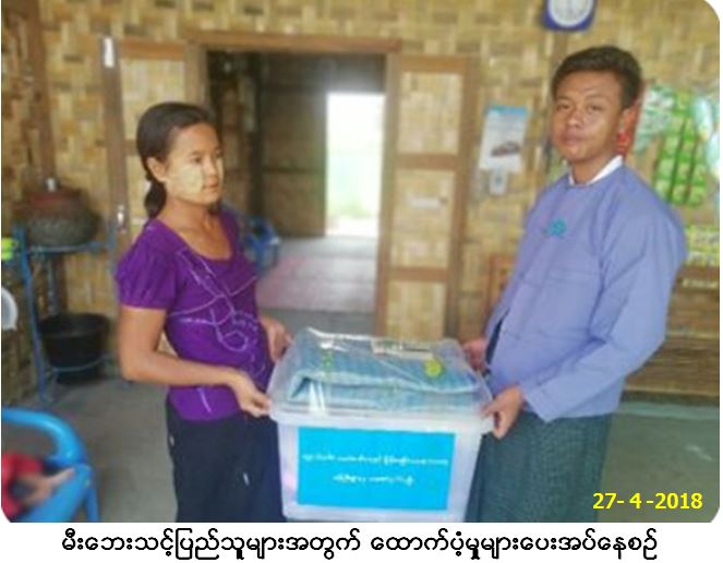 ဘေးအန္တရာယ်ဆိုင်ရာစီမံခန့်ခွဲမှုဦးစီးဌာန၊ စစ်ကိုင်းတိုင်းဒေသကြီးဦးစီးမှူးရုံးမှ တာဝန်ရှိသူများသည် စစ်ကိုင်းတိုင်းဒေသကြီး၊ မုံရွာမြို့၊ ပြည်တော်သာရပ်ကွက်၌ (၂၆-၄-၂၀၁၈)ရက်နေ့ မီးဘေးအတွက် ကယ်ဆယ်ရေးပစ္စည်း(၁၆)မျိုး (၁)အိမ်ထောင်စာနှင့် အိမ်ဆောက် ပစ္စည်းဖိုး(၁၀၀၀၀၀ိ/-)၊ ဆန်ရိက္ခာဖိုး(၈၄၀၀ိ/-) စုစုပေါင်းထောက်ပံ့ငွေ(၁၀၈၄၀၀ိ/-) တို့အား (၂၇-၄-၂၀၁၈)ရက်နေ့တွင် ဘေးသင့် ပြည်သူထံသို့သွားရောက်ထောက်ပံ့ပေးခဲ့ကြောင်း သတင်းရရှိပါသည်။