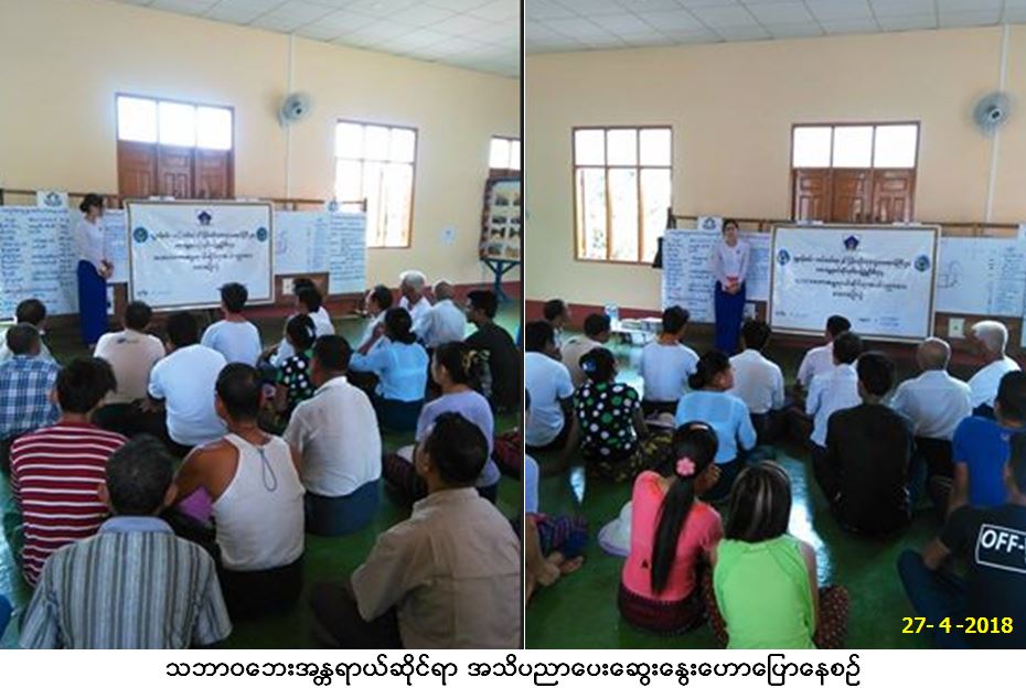 ဘေးအန္တရာယ်ဆိုင်ရာစီမံခန့်ခွဲမှုဦးစီးဌာန၊ မွန်ပြည်နယ်ဦးစီးမှူးရုံးမှ တာဝန်ရှိသူများသည် (၂၇-၄-၂၀၁၈)ရက်နေ့တွင် နံနက် (၁၀:၀၀)မှ (၁၁:၃၀)နာရီအထိ ချောင်းဆုံမြို့နယ်၊ ကညှော်ကျေးရွာ ကျေးရွာခန်းမတွင် ပြည်သူလူထု (၁၃၀)အား သဘာဝဘေး အန္တရာယ်ဆိုင်ရာ အသိပညာပေးဆွေးနွေးခဲ့ပြီး သဘာဝဘေးနှင့်စပ်လျဉ်း၍ ကြိုတင်ကာကွယ်ခြင်းဆောင်ရန်/ရှောင်ရန် အချက်များ လမ်းကမ်းစာစောင်ဖြန့်ဝေပေးခြင်းများ ဆောင်ရွက်ခဲ့ကြောင်း သတင်းရရှိပါသည်။