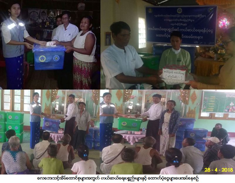 ဘေးအန္တရာယ်ဆိုင်ရာစီမံခန့်ခွဲမှုဦးစီးဌာန၊ မအူပင်ခရိုင်ဦးစီးမှူးရုံးမှ တာဝန်ရှိသူများသည် မအူပင်ခရိုင်၊ ဓနုဖြူမြို့နယ်၊ (ကျုံတနီး၊ ဖုန်းဆိုးတောင်၊ ဆင်လမ်းလေး၊ ဗျင်းဘွဲ့၊ ကုန်းတမ်းတောင်၊သပြု) ကျေးရွာအုပ်စု (၆) စု၌ (၂၄-၄-၂၀၁၈) ရက်နေ့တွင် ဖြစ်ပွားခဲ့သော လေဘေးကြောင့် ဘေးသင့်ခဲ့သော ပြိုကျပျက်စီးနေအိမ် (၄၃) လုံး၊ အိမ်ထောင်စု (၄၃) စုအတွက် ကယ်ဆယ်ရေးပစ္စည်း (၁၆) မျိုး (၄၃) အိမ်ထောင်စာ၊ တစ်စိတ်တစ်ပိုင်းပျက်စီးနေအိမ် (၉၂) လုံးအတွက် ကယ်ဆယ်ရေးပစ္စည်း (၁၀)မျိုး (၉၂) အိမ်ထောင်စာ၊ အိမ်ဆောက်ပစ္စည်းဖိုးငွေ (၈,၉၀၀,၀၀၀ိ/-) ကျပ်၊ လူဦးရေ (၄၇၁) ဦးအတွက် ဆန်ရိက္ခာဖိုးငွေ (၉၈၉,၁၀၀ိ/-) ကျပ်၊ စုစုပေါင်း ထောက်ပံ့ငွေ (၉,၈၈၉,၁၀၀ိ/-) ကျပ်တို့အား (၂၈-၄-၂၀၁၈) ရက်နေ့တွင် ဧရာဝတီတိုင်း ဒေသကြီး အစိုးရအဖွဲ့ဝန်ကြီးချုပ်ဦးဆောင်၍ ထောက်ပံ့ငွေ ပေးအပ်ပွဲ၌ လူမှုရေးဝန်ကြီးနှင့် အစိုးရအဖွဲ့ ဝန်ကြီးများလိုက်ပါသည့် ခရီးစဉ်၌ ဓနုဖြူမြို့နယ် ထွေ/အုပ်မှ တာဝန်ရှိသူများနှင့်အတူ ဘေးသင့်ပြည်သူများ အား ထောက်ပံ့ပေးအပ်ခဲ့ကြောင်း သတင်းရရှိပါသည်။