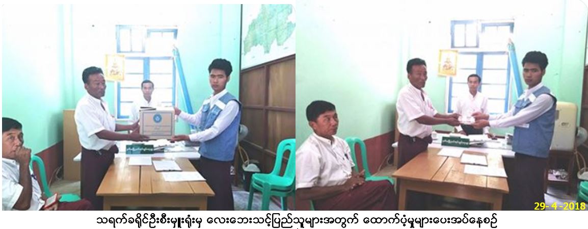 ဘေးအန္တရာယ်ဆိုင်ရာစီမံခန့်ခွဲမှုဦးစီးဌာန၊ သရက်ခရိုင်ဦးစီးမှူးရုံးမှ တာဝန်ရှိသူများသည် (၂၇.၄.၂၀၁၈) ရက်နေ့နှင့် (၂၈.၄.၂၀၁၈) ရက်နေ့တို့တွင် လေပြင်းတိုက်ခတ်မှုကြောင့် မင်းလှမြို့နယ်၊ မလွန်ကျေးရွာအုပ်စု၊ မလွန်ကျေးရွာ၊ သပြေတောကျေးရွာအုပ်စု၊ သပြေတောကျေးရွာနှင့် လက်ခုပ်ပင်ကျေးရွာအုပ်စု၊ လက်ခုပ်ပင်ကျေးရွာတို့တွင် နေအိမ်(၄)လုံးအမိုးလန်ပျက်စီးခဲ့ပြီး အိမ်ခြေ(၄)လုံး၊အိမ်ထောင်စု(၄)စု၊ လူဦးရေ(၁၇)ဦးဘေးသင့့်ခဲ့ပြီး ဘေးသင့်လူဦးရေ(၁၇)ဦးအတွက် ဆန်ရိက္ခာဖိုး(၇)ရက်စာ ၃၅၇၀၀ိ/-၊ နေအိမ်(၄)လုံး အတွက် အိမ်ဆောက် ပစ္စည်းဖိုး ၁၆၀၀၀၀ိ/-၊ ရန်ပုံငွေစုစုပေါင်း ၁၉၅၇၀၀ိ/- နှင့် ကယ်ဆယ်ရေး ပစ္စည်း(၆)မျိုး (၄)အိမ်ထောင်စာတို့ကို (၂၉.၄.၂၀၁၈)ရက်နေ့တွင် မင်းလှမြို့နယ်၊ အထွေထွေအုပ်ချုပ်ရေးဦးစီးဌာနမှ တာဝန်ရှိသူများ၏ရှေ့မှောက်တွင် ဘေးသင့်ပြည်သူများလက်ဝယ်သို့ထောက်ပံ့ပေးအပ်ခဲ့ကြောင်း သတင်းရရှိပါသည်။