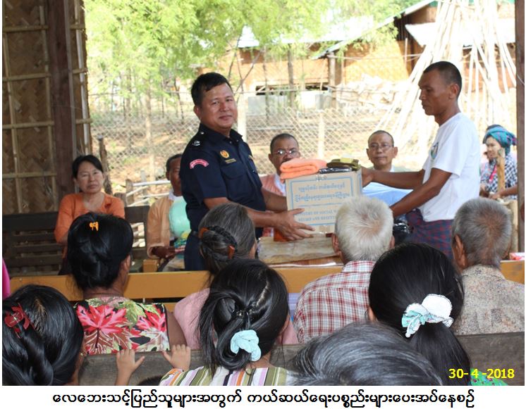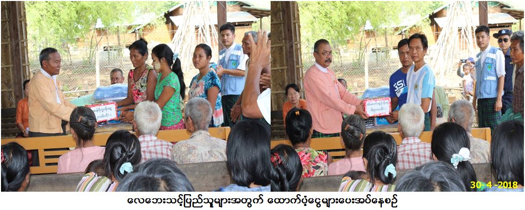 ဘေးအန္တရာယ်ဆိုင်ရာစီမံခန့်ခွဲမှုဦးစီးဌာန၊ ပခုက္ကူခရိုင်ဦးစီးမှူးရုံးမှ တာဝန်ရှိသူများသည် ပေါက်မြို့နယ်၊ ဂွေးဂုံကျေးရွာအုပ်စု၊ ဂွေးဂုံကျေးရွာနှင့် ကျောက်တိုင်ခင်ကျေးရွာအုပ်စု၊ တောင်လုံးကျေးရွာတို့တွင် (၂၉-၄-၂၀၁၈) ရက်နေ့တွင် ဖြစ်ပွားခဲ့သော လေဘေး ကြောင့် ပြိုကျပျက်စီးနေအိမ်(၁)လုံး၊ အမိုးလန်အိမ်ခြေ (၂၅)လုံး၊ အိမ်ထောင်စု(၂၆)စု၊ လူဦးရေ(၁၀၂)ဦး ဘေးသင့်ခဲ့ရာ အိမ်ဆောက်ပစ္စည်းဖိုး (၇၀၀၀၀၀ိ/-)ကျပ်၊ ဆန်ရိက္ခာဖိုး (၂၁၄၂၀၀ိ/-)ကျပ်၊ ပြိုကျပျက်စီးနေအိမ်(၁)လုံးအတွက် ကယ်ဆယ်ရေး ပစ္စည်း(၁၀)မျိုး၊ အမိုးလန် အိမ်ခြေ(၂၅)လုံးအတွက် ကယ်ဆယ်ရေးပစ္စည်း(၄)မျိုး၊ စုစုပေါင်း (၉၁၄၂၀၀ိ/) (ကျပ်ကိုးသိန်းတစ်သောင်း လေးထောင့်နှစ်ရာတိတိ)တို့အား (၃၀-၄-၂၀၁၈)ရက်နေ့တွင် ပေါက်မြို့နယ်ပြည်သူ့လွှတ်တော်ကိုယ်စားလှယ် ဦးရဲထွန်းဝင်း၊ တိုင်း ဒေသကြီး(၁)လွှတ်တော်ကိုယ်စားလှယ် ဦးအောင်သန်း၊ တိုင်းဒေသကြီး(၂)လွှတ်တော် ကိုယ်စားလှယ် ဒေါ်မြင့်စန်း၊ ခရိုင်အထွေထွေ အုပ်ချုပ်ရေးဦးစီးဌာနမှ ခရိုင်အုပ်ချုပ်ရေးမှူး ဦးကိုကိုလွင်၊ ပေါက်မြို့နယ်အထွေထွေအုပ်ချုပ်ရေးဦးစီးဌာနမှ ဒုတိယမြို့နယ်အုပ်ချုပ် ရေးမှူး၊ ခရိုင်/မြို့နယ်မီးသတ်ဦးစီးဌာန၊ ခရိုင်/မြို့နယ် ပြန်/ဆက်ဦးစီးဌာန၊ အနာဂတ်အလင်းရောင်လူငယ်ဖွံ့ဖြိုးရေးအသင်းဥက္ကဌ ဦးရဲထွဋ်တို့နှင့်အတူ ဘေးသင့်ပြည်သူများ၏ လက်ဝယ်အရောက် ထောက်ပံ့ပေးအပ်ခဲ့ကြောင်း သတင်းရရှိပါသည်။