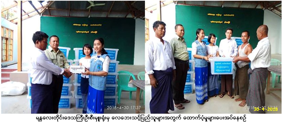 ဘေးအန္တရာယ်ဆိုင်ရာစီမံခန့်ခွဲမှုဦးစီးဌာန၊ မန္တလေးတိုင်းဒေသကြီးဦးစီးမှူးရုံးမှတာဝန်ရှိသူများသည် နွားထိုးကြီးမြို့နယ်အတွင်း (၂၇.၄.၂၀၁၈) ရက်နေ့မှ (၂၈.၄.၂၀၁၈)ရက်နေ့အထိ ဖြစ်ပွားသောလေပြင်းဘေးကြောင့် အမိုးလန်အိမ်ထောင်စု (၃၀)စုအတွက် ကယ်ဆယ်ရေးပစ္စည်း (၁၀)မျိုးပါ အိမ်ထောင်စု (၃၀)စာနှင့် အိမ်ဆောက်ပစ္စည်းဖိုး ကျပ်ငွေ(၁၄၉၃၀၀၀ိ/-)တိတိတို့အား (၃၀.၄.၂၀၁၈)ရက်နေ့တွင် သွားရောက်ထောက်ပံ့ပေးခဲ့ကြောင်း သတင်းရရှိပါသည်။